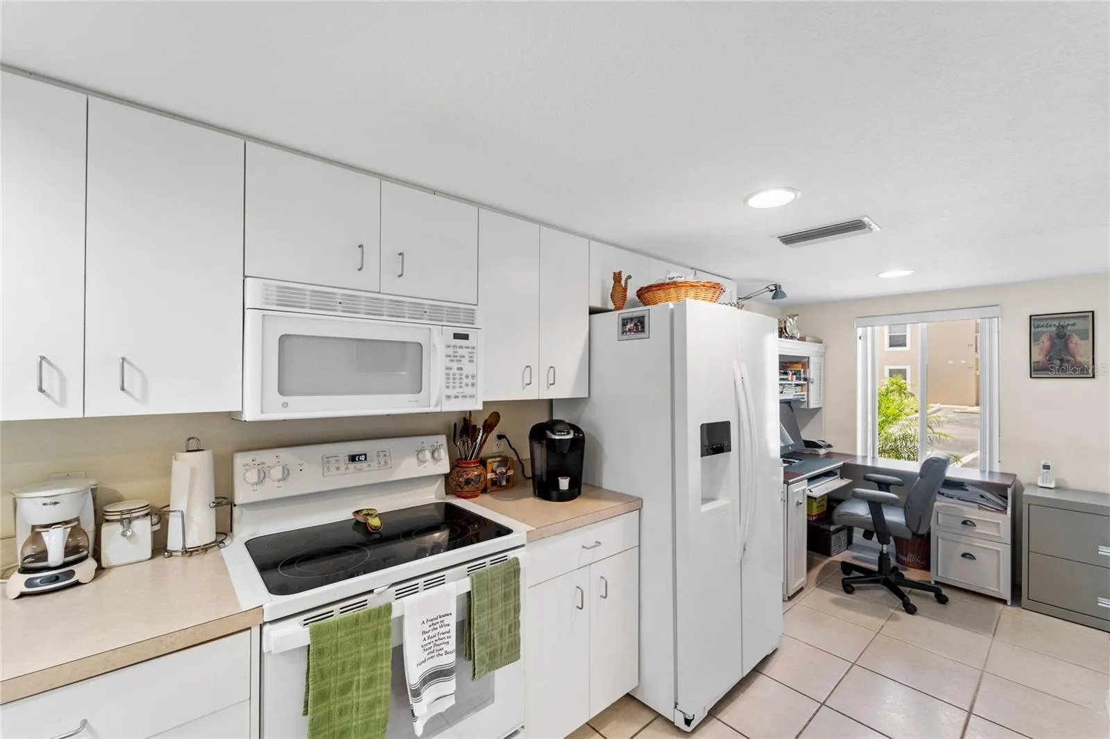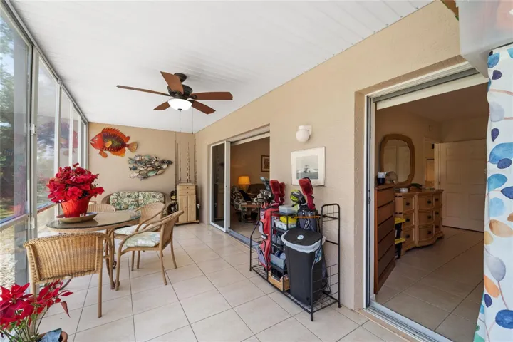 Step inside to find tile flooring throughout, a bright kitchen with ample cabinetry, and a spacious living/dining room combo that opens to a screened rear lanai—perfect for enjoying morning coffee or evening breezes. The generously sized bedrooms offer built-in closets, and the primary suite includes an en-suite bath for added privacy.