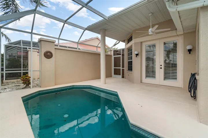Out back, enjoy a private, Italian-tiled plunge pool, plenty of space for dining and entertaining, plus a shared dock and private boat slip—offering easy access to Charlotte Harbor, the Gulf, fishing, sailing, kayaking, and more.