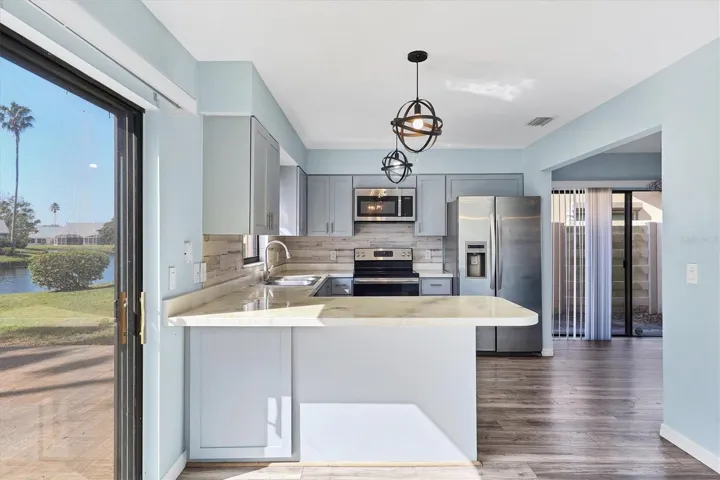 ~ AFFORDABLE AND IN A WONDERFUL LOCATION ~ You’ll have the pleasure of enjoying life in a maintenance free, age and pet friendly community in this two story 3BR 2.5 BA townhome in beautiful Five Lakes. This lovely home is positioned on a small pond where you can relax and take in the water views from your back outdoor patio deck. You’re going to love the convenience of being located just minutes away from Detweilers, the State College of Florida, IMG Academy and Bradenton’s sandy beaches. The tropical landscaping and front courtyard make this an inviting entrance. An open floor plan, breakfast bar, pantry closet, guest 1/2 bath and private PVC fenced side patio accessible by sliding glass doors off of the living room add ambiance to the first floors living area. Amenities include an attractive fireplace with accent shelving, contemporary lighting fixtures, a kitchen window viewing the backyard and pond, stainless steel appliances, raised panel cabinetry, brand new verticals, luxury vinyl plank flooring on the first level and newer carpeted bedrooms upstairs. A hallway laundry closet is conveniently located on the 2nd floor. Both upstairs bathrooms have been stylishly updated with granite countertops, a barn door accessing the primary ensuite bathroom and a tiled tub and shower. The primary bedroom offers a walk in closet along with second built in closet. A new water heater, 2020 roof and 2021 A/C will provide peace of mind and savings as well for your homeowners insurance. There’s also an exterior storage closet for your extras. Enjoy the community pool, tennis courts and activities plus the added advantage of having additional parking available for trucks and RV for residents only. What’s not to love … come make this yours!