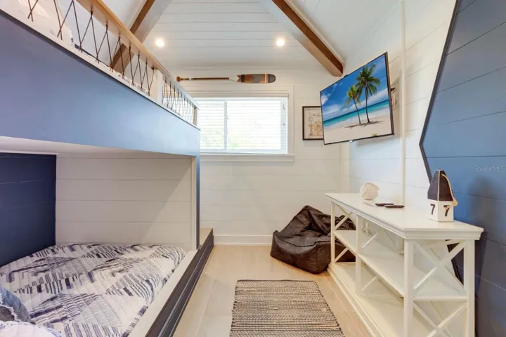 Located on picturesque Anna Maria Island, this exceptional 9-bedroom, 8.5-bathroom coastal retreat offers 4,244 sq ft of heated living space with luxurious amenities throughout. The open-concept interior features an oversized kitchen with a spacious quartz island, upgraded appliances, and a wet bar for entertaining. Enjoy the multiple balconies or the rooftop deck, showcasing Gulf of Mexico views and unforgettable sunsets. Just a 3 MINUTE WALK TO THE BEACH! The private backyard oasis includes a custom styled pool with a hot tub, a game area, and plenty of space for lounging. The primary suite, located on the third floor, includes a king bed, private balcony, and a spa-like ensuite with an enclosed shower and tub. 5 additional king bedrooms feature ensuite bathrooms, some with balcony access, while 2 king bedrooms share a hallway bathroom. The ninth bedroom offers a full-over-full bunk bed and an ensuite bath. ALL FURNISHINGS INCLUDED. Additional highlights include an elevator, game room, and parking for up to FIVE cars. This ideal beach retreat combines modern elegance with relaxed island charm- GREAT RENTAL OPPORTUNITY.