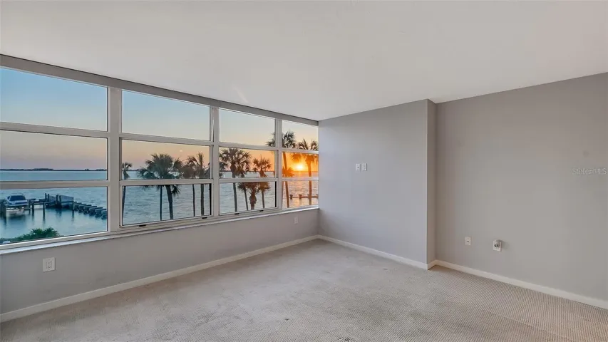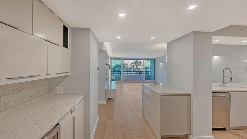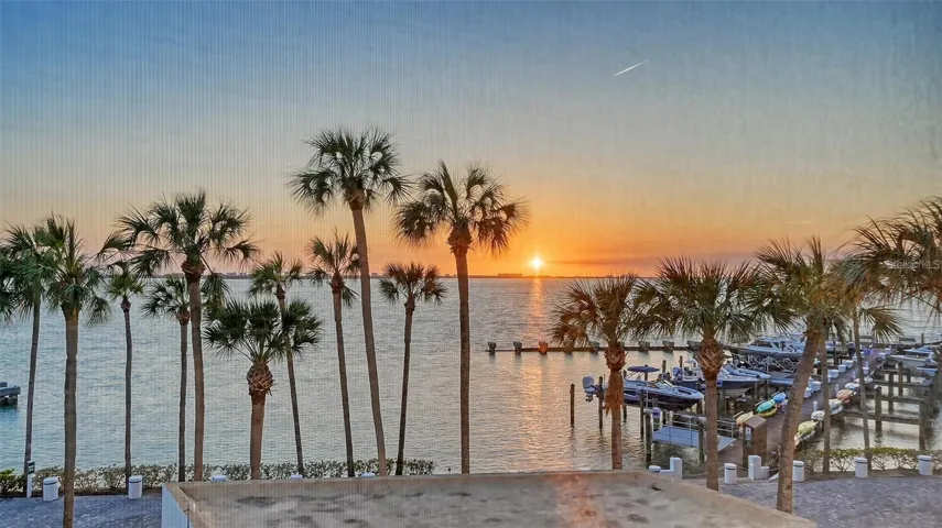 One or more photo(s) has been virtually staged. Direct Bayfront living in the heart of Sarasota at Condo on the Bay. This fully renovated 2 bed/2 bath residence features beautiful panoramic views of the Sarasota Bayfront with breathtaking sunsets over LBK and Ringling Bridge. Step into the inviting Great Room – greeted by a wall of impact glass floor-to-ceiling sliding doors that seamlessly blend the outdoors in, opening to a spacious balcony overlooking one of two residents pools, just steps from one of the long piers and boat slips. Interior features include White Oak engineered hardwood flooring flowing throughout the Main Living space, complemented by custom built-in cabinetry and a dry bar with a wine refrigerator for easy entertaining. A chef’s delight, the modern kitchen features Elite Woodwork of Sarasota Cabinetry, stainless steel appliances including an induction cooktop and built-in wall oven and microwave, quartz countertops, Walnut wood backsplash, built-in pantry, and breakfast bar for casual dining. A conveniently located laundry closet with full-size stackable front-loading washer and dryer completes the kitchen. A true oasis, the master suite has serene water views, remote controlled Hunter Douglas shades, and plenty of storage space with a large walk-in customized closet plus a full entry wall of built-in cabinetry. The updated en-suite bathroom features dual floating vanities, modern floor-to-ceiling tile, a walk-in shower with frameless glass enclosure and multiple shower heads. The generously sized secondary bedroom boasts double built-in closets and a secondary bathroom with a floating vanity, walk-in shower with a frameless glass enclosure, and a built-in linen closet. New Ruud A/C in March 2023. Set directly on Sarasota Bay, the highly sought after community offers a lifestyle of sophistication and serenity. A range of amenities include staffed 24-hour security gated guardhouse, “sky lobbies” located on a number of floors throughout, two resort-style pools overlooking the bay, two fitness centers, tennis courts, pickleball courts, concierge services and boat/kayak docks with a fishing pier. This pet-friendly Tower II residence includes one assigned under-building parking space with secure access and storage. Just steps away from Sarasota Bay Park and the vibrant culture and arts scene of Downtown Sarasota, world-class dining, shopping and entertainment. A short drive to St. Armand’s Circle and Lido Beach. Don’t wait – it is time to experience a luxurious urban life from the 3rd floor of Tower II, in the Bayfront heart of Downtown Sarasota!