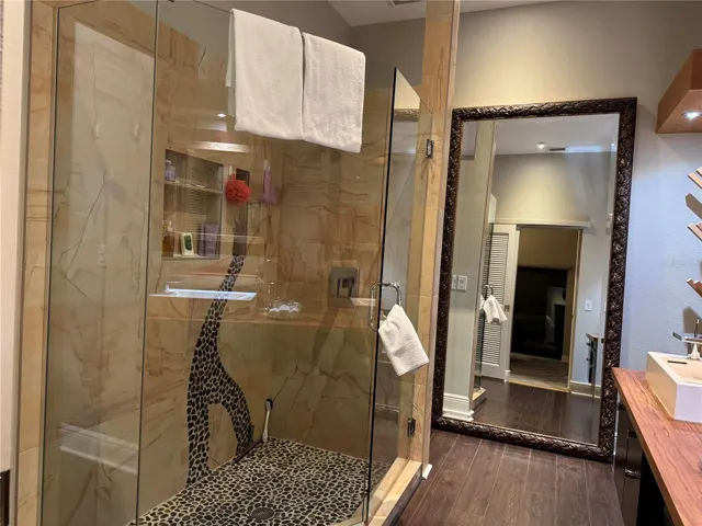 Retreat to the master suite, featuring a split king adjustable bed and a spacious, newly renovated walk-in closet. The spa-like bathroom is a sanctuary of relaxation, boasting a large shower and dual vanities with exquisite a wood countertop. The second bedroom and office share a well-appointed bathroom, complete with a tub and shower. Both bedrooms have stunning views of the Intracoastal, allowing you to wake up to the sounds of seagulls and dolphins.