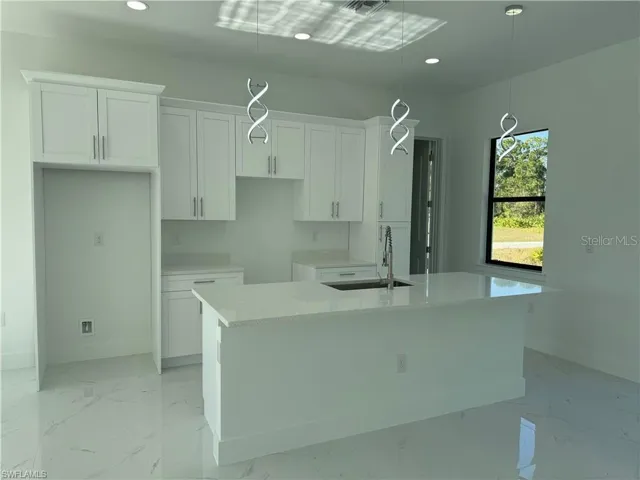 Welcome to your future home, where modern elegance meets thoughtful design in this newly constructed residence. Nestled in a prime Lehigh Acres location, this pristine property presents an exceptional opportunity for those seeking contemporary living with refined details. Step into a harmonious layout featuring three generously proportioned bedrooms complemented by three well-appointed bathrooms, offering the perfect balance of privacy and comfort. The heart of this home showcases a refined open-concept kitchen that seamlessly blends functionality with style. Culinary enthusiasts will appreciate the designer touches, including premium quartz countertops, a spacious island perfect for casual dining and entertaining, and a complete suite of new stainless steel appliances. The carefully curated appliance package includes a refrigerator, dishwasher, built-in microwave, and range, all selected to enhance your cooking experience. Thoughtful attention to detail is evident throughout, from the sleek porcelain tile flooring that flows seamlessly through each room to the impact-resistant windows and doors that provide both security and peace of mind. The property’s strategic location outside of flood zones offers additional reassurance for homeowners. The residence’s exceptional location places you moments away from essential amenities, including educational institutions spanning elementary through high school levels, and a public library. For those requiring convenient access to Fort Myers, the property’s position provides effortless connectivity to urban conveniences while maintaining a serene residential atmosphere. Every element of this home has been carefully considered to create an environment where luxury meets practicality. The clean lines, modern fixtures, and superior craftsmanship combine to deliver a living space that exceeds expectations. With completion mere weeks away, this property presents a rare opportunity to be the first to call this exceptional residence home. Experience the perfect blend of refined design and practical living in this newly constructed haven. Don’t let this opportunity to own a piece of modern luxury slip away – schedule your private viewing today and step into your future home.