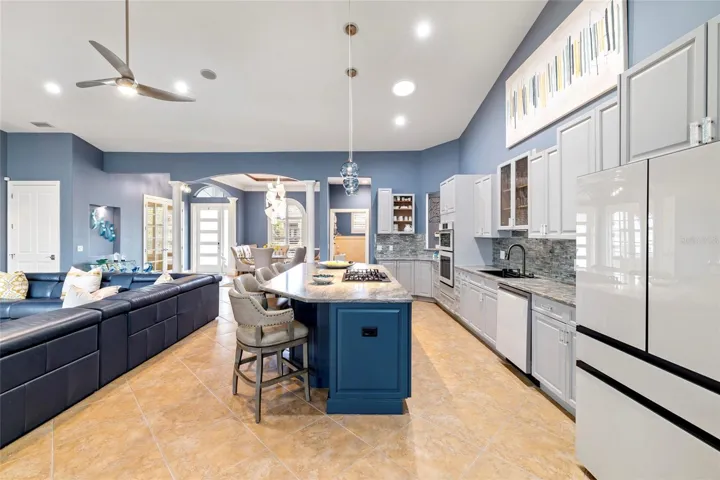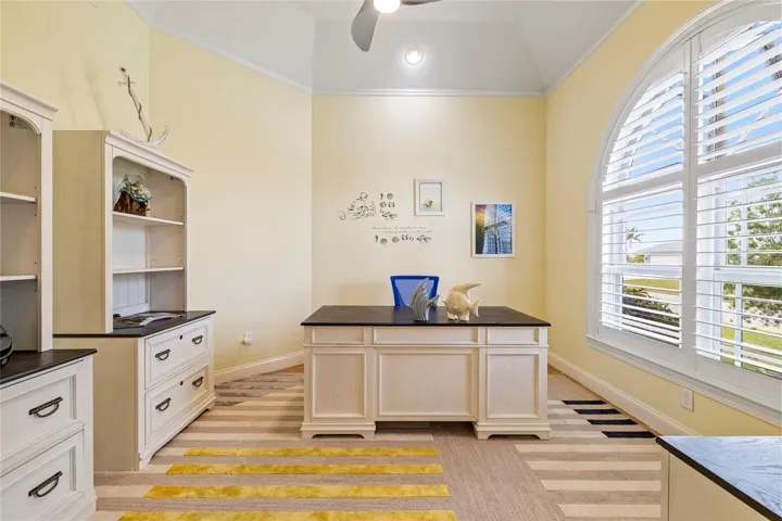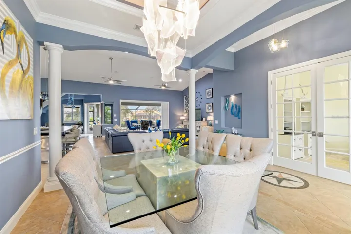 This architectural masterpiece showcases soaring double tray ceilings, 8-foot doors, and a split floor plan that lives like a much larger home. The gourmet kitchen features rich wood cabinetry, granite counters, gas range, and convection oven — all overlooking stunning canal views. The flexible den with French doors easily converts to a fourth bedroom. The master suite is a true retreat with private lanai access, oversized walk-in closet, and spa-inspired bathroom.
