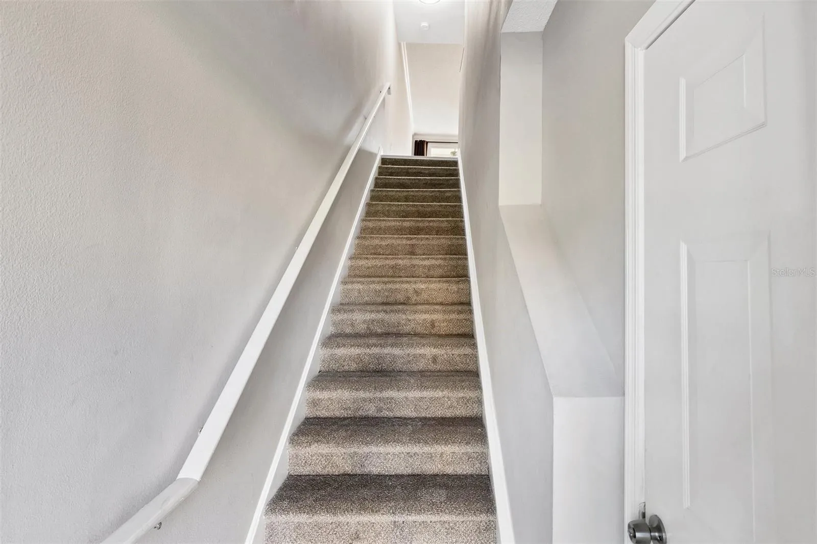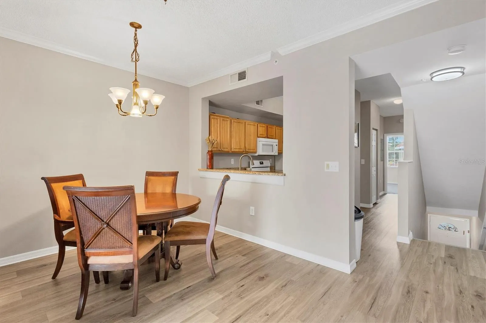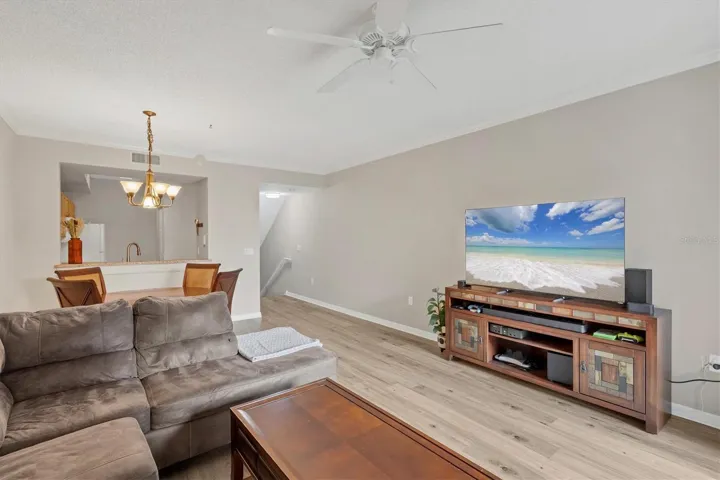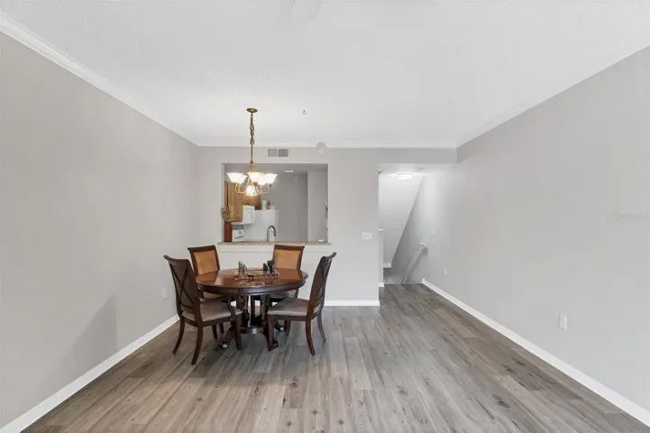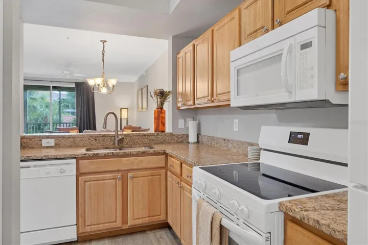 Move-In Ready in Las Palmas! This stylish 3BR/3BA townhome-style condo with attached garage offers a new roof (2024), brand new carpet on the stairs, a new garbage disposal, and newer kitchen appliances. The open living/dining area flows to a screened balcony with tranquil pool and pond views, while the kitchen features granite counters, wood cabinetry, breakfast bar, and pantry.