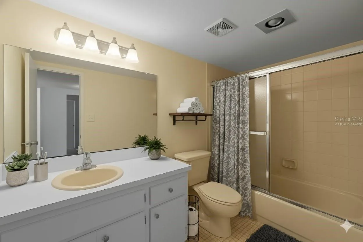 The bathroom is both practical and timeless, featuring soft beige tones, a functional vanity, and a cohesive tile design. The vintage kitchen offers a classic U-shaped layout and light cabinetry, making it easy to whip up your favorite home-cooked meals.