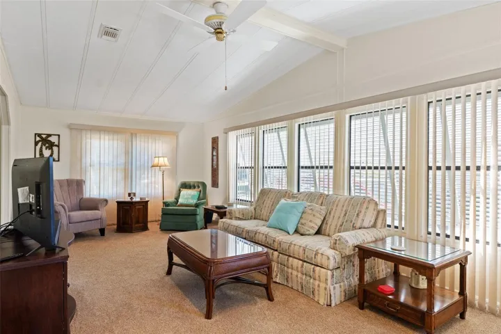 PRICE IMPROVEMENT! This home should be one of your top choices to view! Welcome to Lazy River Village! One of the premiere (if not THE best) 55+ waterfront manufactured park in all of Sarasota and Charlotte counties! The BEST amenities, clubs, and selection of activities you will find in any co-op park in all of Sarasota county and even Charlotte County. Lazy River is located on the banks of the beautiful Myakka River. This 2 bed 2 bath home is ready to move right in! This well-maintained home is the perfect seasonal place to enjoy Florida’s coveted gorgeous winters and a perfect year-round home for those who love all 4 seasons of Florida. The spacious family room features cathedral ceilings and a wet bar–perfect for entertaining! There’s also a convenient pass-through window from the kitchen to the family room. The cozy kitchen has everything you need to prepare home-cooked meals or more celebratory party fare! The bright office space offers plenty of room to work–work-from-home or use it for your favorite hobbies. A large screened patio is a fabulous space for enjoying Florida’s coveted warm winter days, with extra large windows for a bright, vibrant living space. The laundry room has a washer, dryer, and sub-tub, along with shelving for storage.