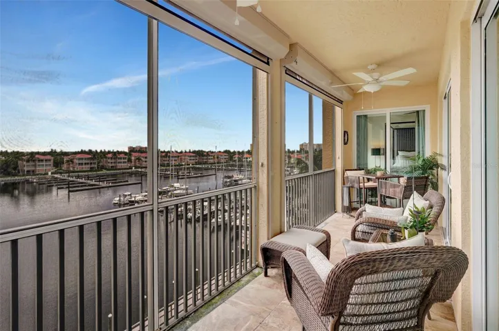 This is what you have been waiting for! Step into elevated coastal living with this 5th-floor corner residence in Harbor Towers at Burnt Store Marina. This light-filled condo offers sweeping water and marina views through expansive windows and a thoughtfully designed open layout. Enjoy effortless indoor-outdoor living from the private screened lanai—perfect for taking in serene sunsets. Elegant finishes, abundant natural light, and modern comforts define this spacious retreat. Includes covered parking and access to resort-style amenities in one of Southwest Florida’s most exclusive waterfront communities. A rare blend of style, sophistication, and location.
