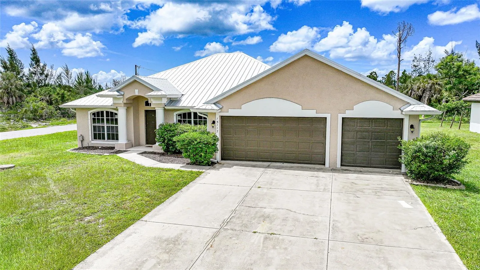 ANNUAL RENTAL in South Gulf Cove! ALSO AVAILABLE FOR SALE OR OWNER FINANCING!!! This is a large corner lot home with 2,126 s.f under A/C 4 bedrooms plus 2 bath, and 3 car garage and a driveway for another 3 large vehicles. This split plan home boasts with many upgrades – new metal roof, freshly painted interior, new AC, new hot water heater and LED lighting. The home features separate living and formal dining rooms, 42″ wood cabinets in the kitchen, cultured marble in both bathrooms and Corian kitchen counter tops, 18″ tile in kitchen and family room. The rest of the house boasts with wood grain tile for an elegant look. Master bedroom has tray ceiling, separate walk in closets. Master bath features garden tub, separate shower and two separate bathroom sinks. All bedrooms and family room have ceiling fans along with two ceiling fans on the porch. Washer and dryer hookups in inside laundry room. Located in the beautiful South Gulf Cove water community with over 50 miles of canals. The home is minutes from the community boat ramp and park with easy gulf access. You can easily bike to the waterfront parks. Close to beautiful Gulf beaches, golfing, shopping and world class fishing. No smoking is allowed in the house. The ideal tenant earns 3 times the monthly rent; has NO history of evictions, the ability to clear the background screening and a good credit history. No Application fee! Please be aware of scams, we will never ask you to wire money. First and last month rent and Security Deposit of $2500 is due on or before move in. Will be move in ready August 1st.
