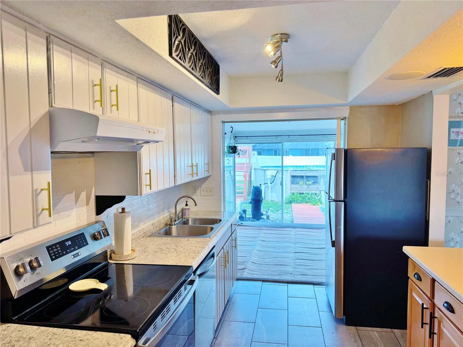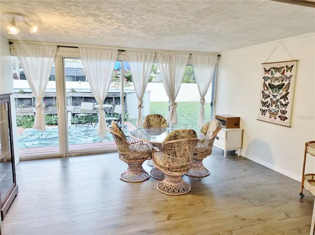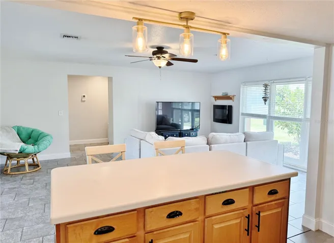 Inside, a bright, open floor plan welcomes you with tile flooring throughout. The large great room flows into an updated kitchen featuring stainless steel appliances, a breakfast bar island, and ample cabinet space. A versatile bonus room opens to the pool area through sliding glass doors, while the air-conditioned Florida room offers the perfect spot for a home office, hobby space, or peaceful getaway..