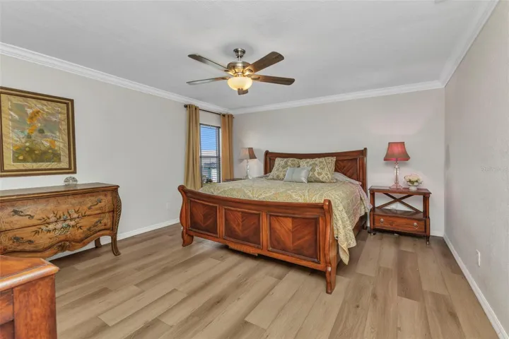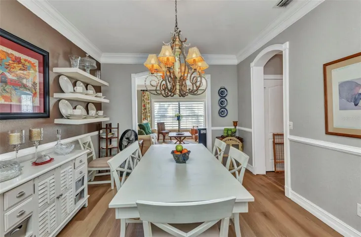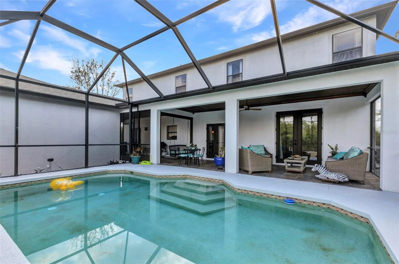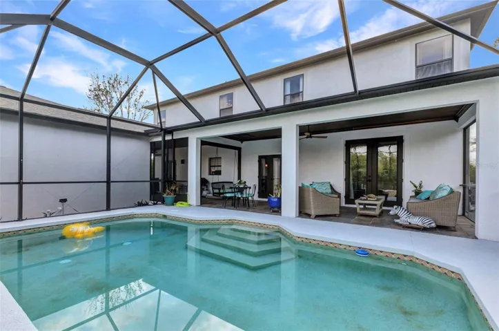 The home moves the way life does: from a quiet front living room perfect for morning coffee, to a comfortable family room for game nights, to a dining space that turns holidays into events. Beyond the sliding doors, a screened lanai wraps around a sparkling pool, surrounded by mature tropical landscaping that feels like your own private retreat.