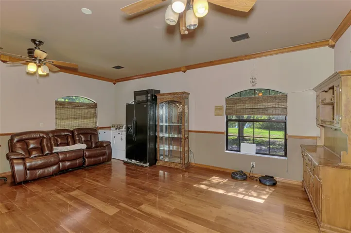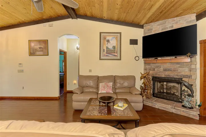 Custom-Built 3.2-Acre Estate with Pond, Tiny Home & Gorgeous Features Inside and Out! Looking for space, style, and plenty of extras? This 3-bedroom, 2-bath estate sits on 3 peaceful acres and is packed with features that make everyday living something to enjoy. From the moment you pull up to the screened front porch and pass through the lead glass entry door, you’ll notice how much care has gone into every detail of this home featuring over 2,000 sq.ft of living space! Step inside and look up — the custom wood cathedral ceiling with exposed beams sets a warm, rustic tone that’s hard to find anywhere else. A stone gas fireplace in the family room brings charm and comfort, while wood flooring and wood-look tile stretch through all living areas for a clean, stylish feel. The formal dining room offers space for gathering, while the open kitchen includes solid wood cabinets with crown molding, granite countertops, a large breakfast bar, and an eat-in nook that fills with natural light. The master bedroom is a peaceful retreat with tray ceilings, custom crown molding, wood floors, and a walk-in closet. The master bath is a standout with a jetted tub, a Roman tile shower, wood cabinets, and more granite countertops. Two additional bedrooms feature tray ceilings, ceiling fans, and built-in closets. Step outside through the triple sliders to your spacious screened lanai, complete with a ceiling fan for comfort on warm days. Want to enjoy the outdoors even more? You’ll love the finishing pond, 16×12 tiny home that’s perfect for guests, large wire chicken coops, and 2 RV pads (one with power and water). The professionally landscaped yard includes fruit trees and a raised garden bed, ready for your green thumb. Other features include spray foam insulation throughout the attic, plant shelves, and a location that’s close to schools, shopping, and dining. Minutes to I-75 entrance, and only a short drive to Sarasota and Fort Myers! Call now to schedule your private tour — this one won’t last!