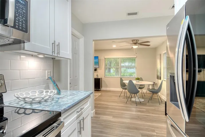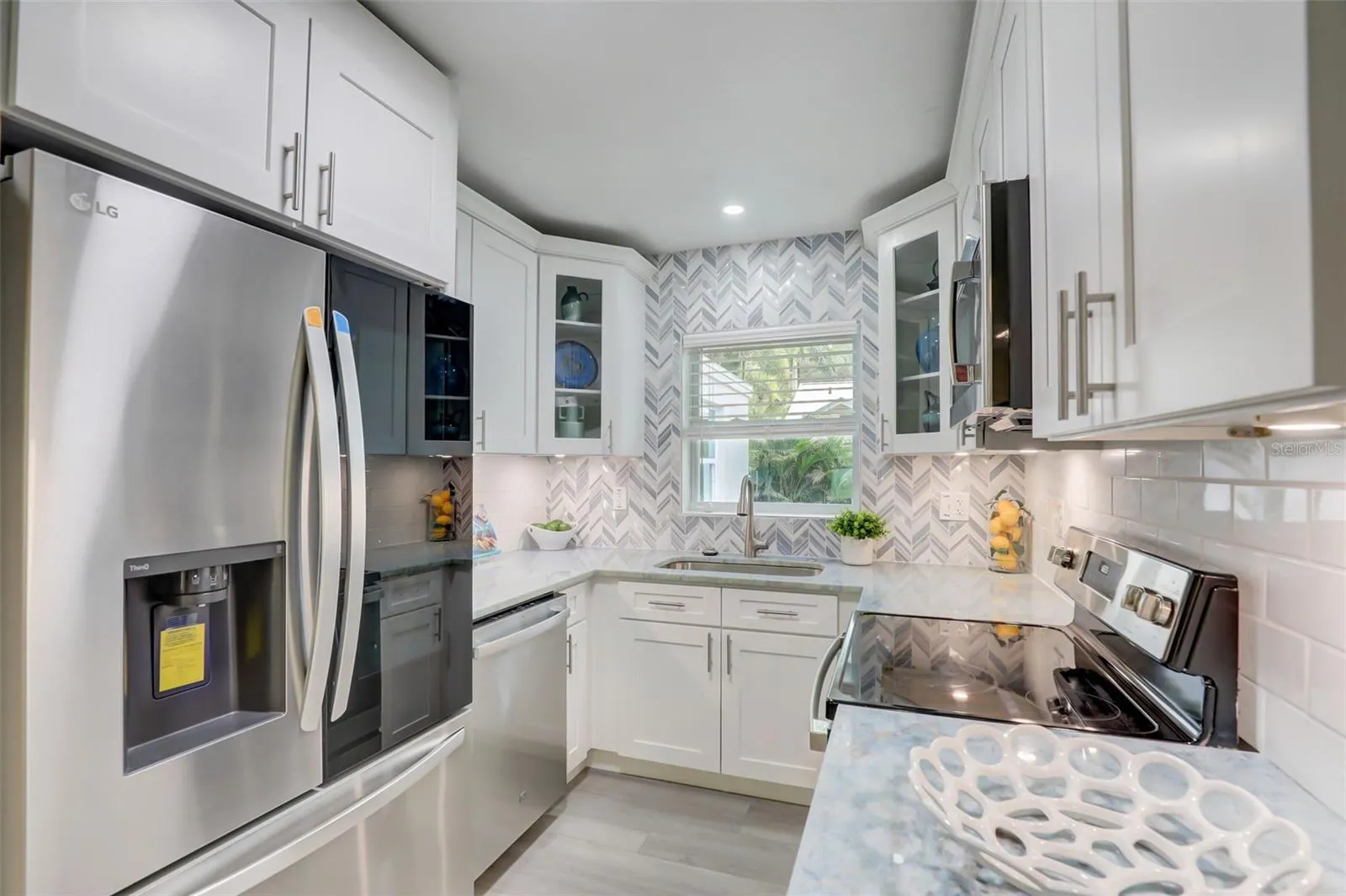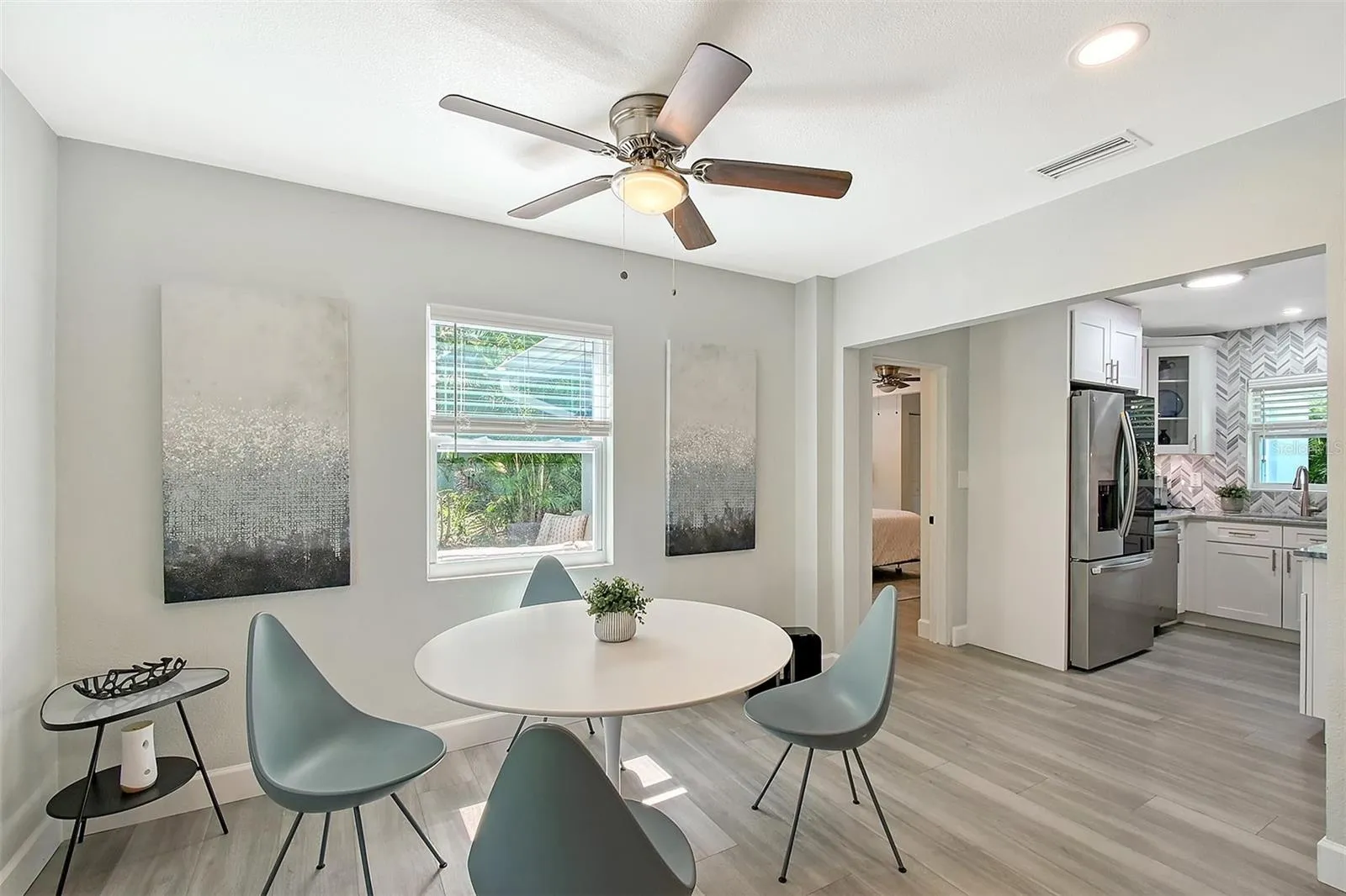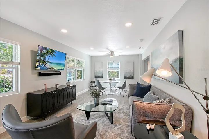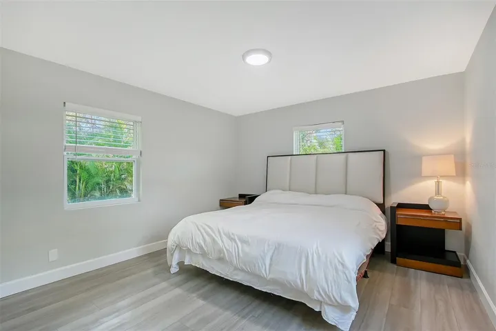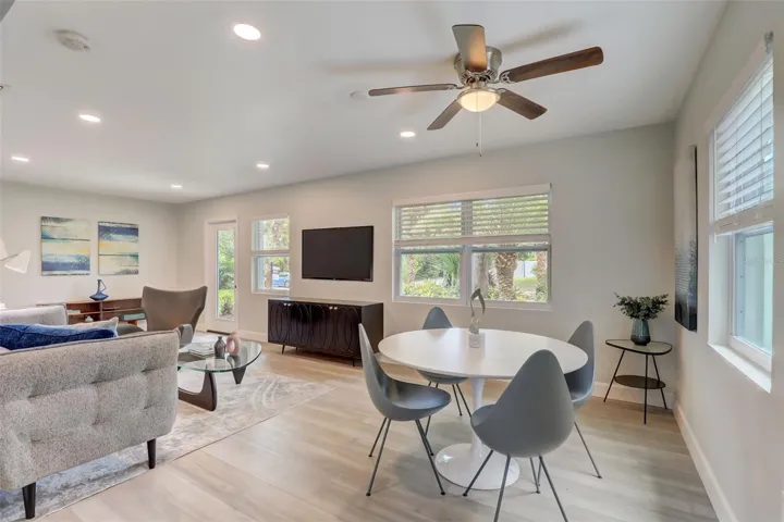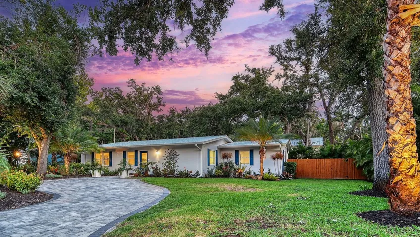 Welcome to Sapphire Shores, this property is on almost a quarter acre. This stunning 2023-25 completely remodeled Mid Century Modern residence is nestled in the highly sought-after Indian Beach/Sapphire Shores community of Sarasota. No expense was spared in transforming this gem into a luxurious haven, offering 4 bedrooms, 3 baths. Two outdoor relaxation areas, and a privacy fenced yard. The in-law suite with full bath, is perfect for guests, Airbnb, or a work-from-home office. New metal roof, aluminum soffit, and gutters, new AC system, hurricane impact windows and doors. New Kitchen, and appliances, New stackable washer and dryer. Newly furnished, and equipped. Experience the ultimate Gulf Coast lifestyle with this exceptional home, located West-of-the-Trail, mere minutes from downtown Sarasota, St. Armand’s Circle, and the pristine sands of Lido Beach. Enjoy the perfect blend of timeless elegance and modern convenience in this exquisite property. Step inside to discover a thoughtfully designed interior, boasting high-end finishes, an open-concept layout, and an abundance of natural light. The spacious living areas flow seamlessly, creating an ideal setting for both relaxation and entertaining. The gourmet kitchen features state-of-the-art appliances, custom cabinetry, and stunning Blue Onyx countertops, making it a chef’s dream. Come take a new look! Move in Ready!