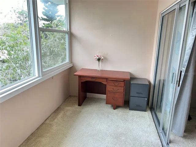 Unwind in the enclosed lanai, a versatile space enhanced by hurricane impact windows that let in abundant natural light while providing peace of mind. The updated electric panel, assigned carport parking, and convenient lift/elevator access make everyday living a breeze.