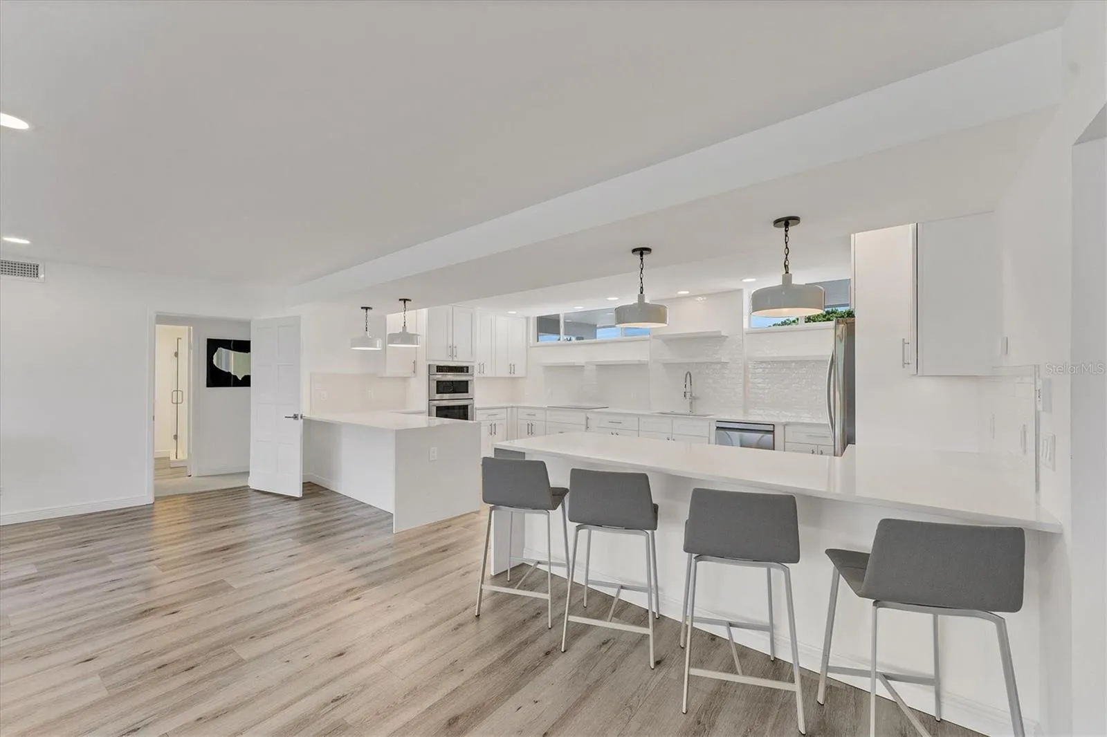 Sands Point, a sought-after beachfront community within the gates of the Longboat Key Club, set on the gorgeous southern tip of Longboat Key. This newly remodeled 3BR/2BA, split plane with a large open living space to relax or entertain family and friends. The kitchen has been remarkably redone, featuring a breakfast bar, dining area, and custom solid surface countertops to complement the all-white cabinetry, designer tile and backsplash and stainless-steel appliances. The Master suite provides a wall of windows to enjoy morning sunlight and views, this spacious ensuite w/bath and walk-in shower. The 2& 3rd guest bedroom is well-sized and arranged to ensure the comfort of your visitors, with a beautiful tropical backdrop beyond. Residents of Sands Point indulge in a resort lifestyle, with a heated pool, Kayaking, clubhouse and optional boat docks at the Sands Point Marina. Shorts drive to the restaurants and shops of St. Armands Circle as well as downtown Sarasota.