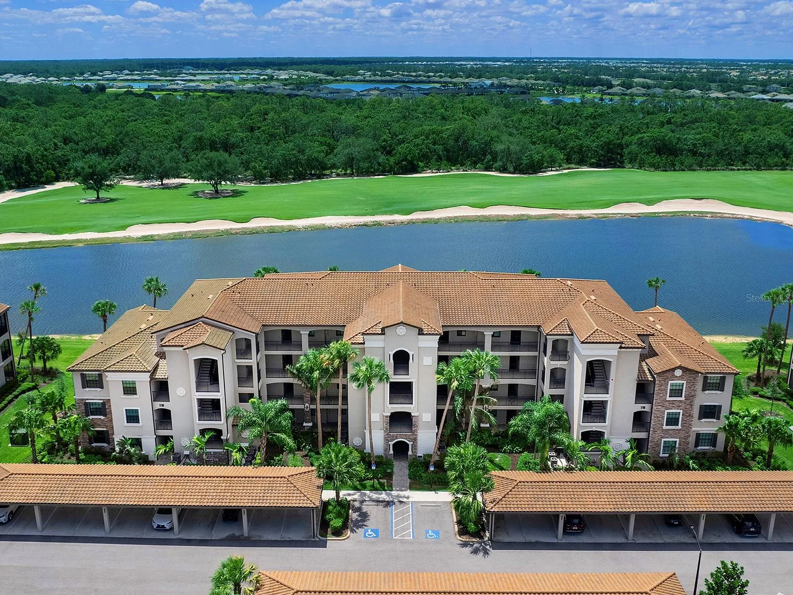 NOW JUST $275,000 FOR FURNISHED UNIT WITH GOLF MEMBERSHIP – AN AMAZING DEAL! This one of the most AFFORDABLE CONDOS in Lakewood National and is offered FULLY FURNISHED and with full GOLF MEMBERSHIP for the larger size unit! Don’t miss this incredible opportunity! Overlooking the 11th hole of the Commander golf course at Lakewood National, sits this charming and FURNISHED Birkdale floor plan condo. With 2 bedrooms and 2 full bathrooms, and boasting both beautiful lake and serene golf course views, this unit is perfect for those looking to “right-size”, for a seasonal home, or an investment opportunity with 30-day rentals allowed. Included in your HOA dues is membership to Lakewood National, allowing you to take advantage of the resort-style amenities including two 18-hole championship golf courses, the Piper and Commander, both designed by Arnold Palmer. Also included is access to the grand clubhouses, resort-style pool, 8 tennis courts, 4 pickleball courts, fitness center, spa, restaurant, and more. You almost never need to leave the neighborhood! This unit includes a covered carport parking space, and easy access via the stairs or building elevator to the second level which is perfectly positioned to take in the views. The interior is graced by large format tile flooring, crown molding, an open floor plan, and impressive southern exposure views. The great room is centrally located with remote-controlled blind and sliding glass doors to the private, screened in, paver balcony overlooking the lake and golf course. The kitchen is outfitted with abundant solid wood cabinetry that reaches to the ceiling, 2024 rechargeable undercabinet lighting, central island with counter-height seating, granite counters, and stainless-steel appliance suite. The dining room offers large bay-style windows to take in the views, and enough space to even add a small desk for more functional space. Enjoy enhanced style with 2022 kitchen pendant lights and 2022 dining room chandelier. The primary suite has plush carpeting, large walk-in closet, and en-suite bathroom with walk-in shower. The guest bedroom is equally as comfortable with an adjacent full bathroom. Peace of mind is secured with impact windows and doors throughout, easy “lock and leave” living, 2024 rechargeable motion sensor light at the front door, surge protection and large storage room outside of your unit just for you. Included in the Lakewood National condo dues are cable, internet, water, sewer, building maintenance, pest control, elevator, and an exclusive pool located just steps away for convenience. Lakewood National is one of the area’s premier gated communities for elevated, resort-style living. Lakewood Ranch, the top multi-generational community in the country for seven years in a row with plentiful shopping, dining, A-rated schools, parks, and nearby beaches.