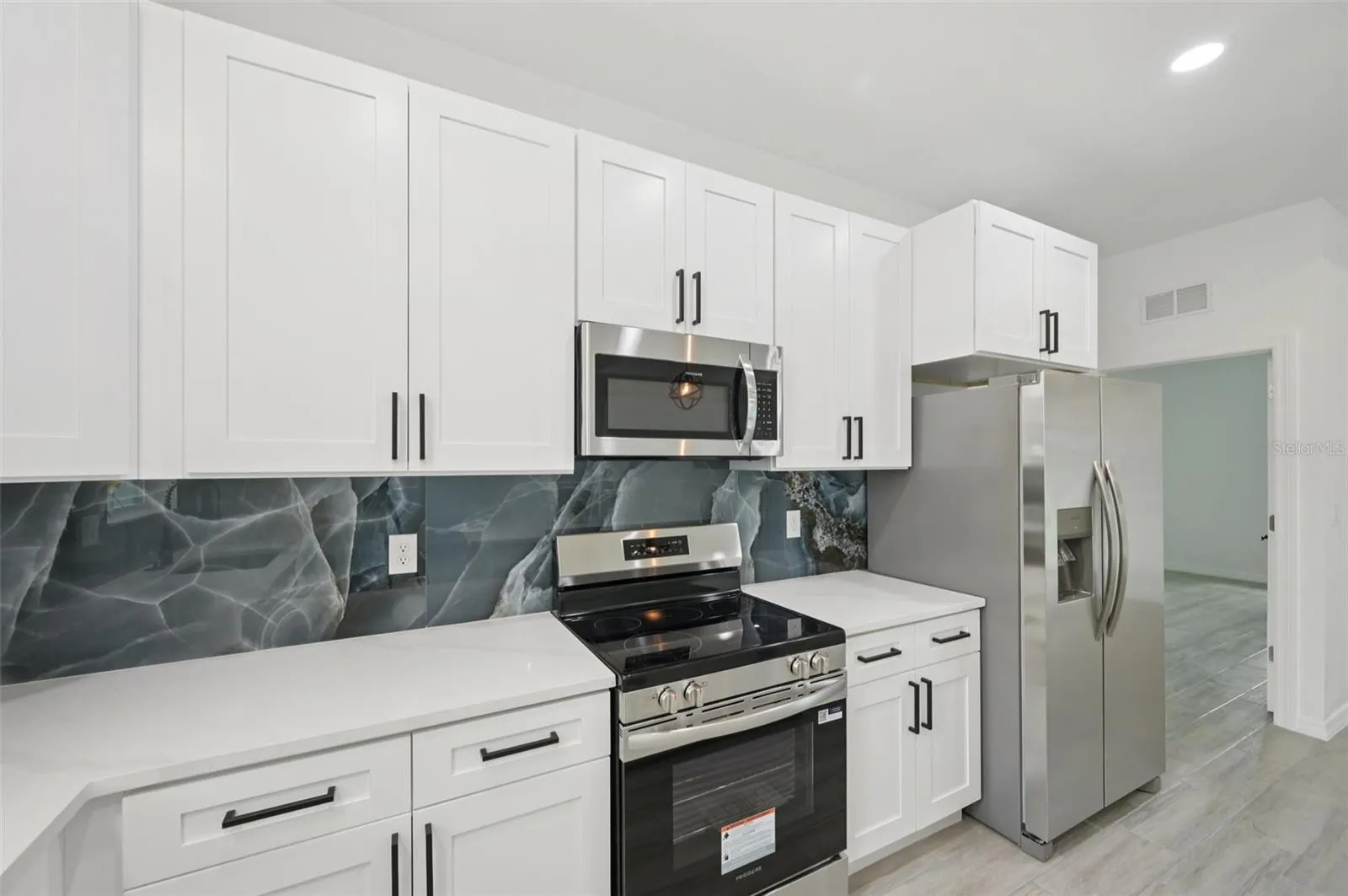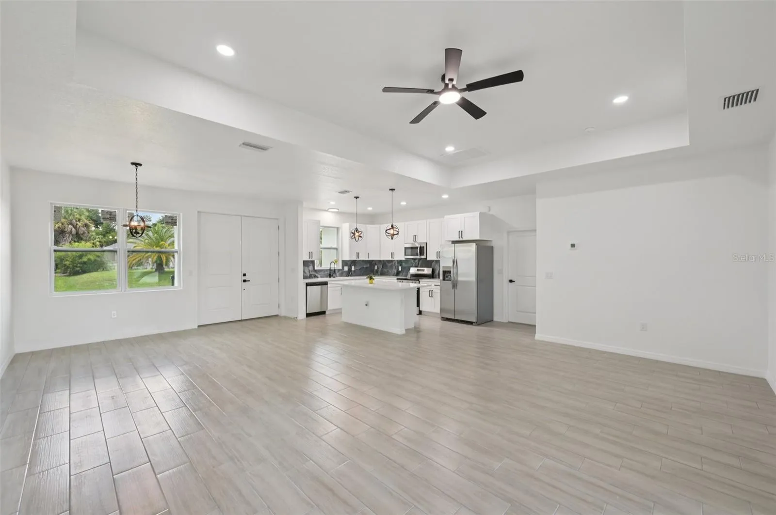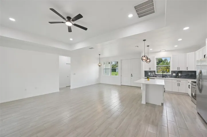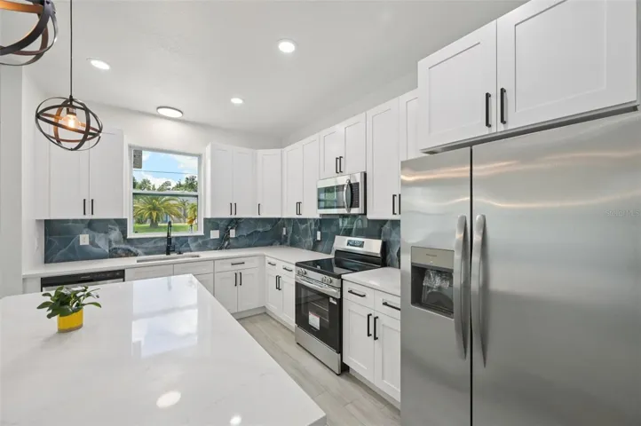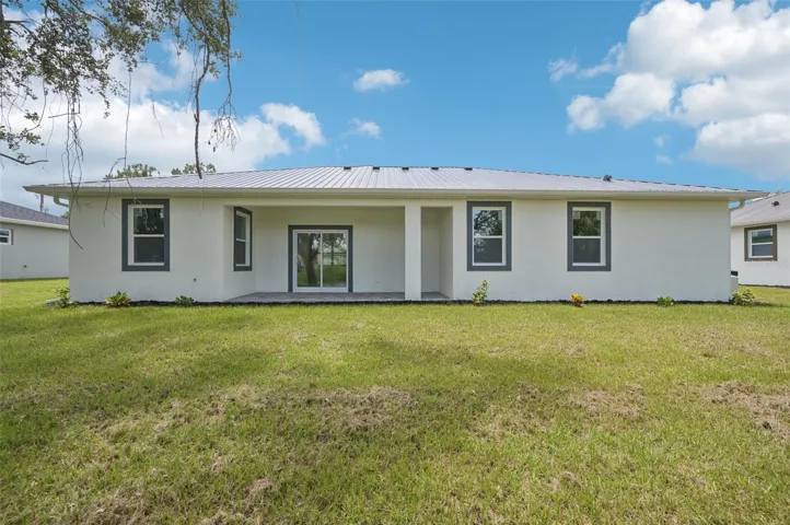Move In Ready! Brand new construction featuring a durable metal roof, full impact protection with windows, doors, and garage door, plus a stunning double 8-foot front entry door. Located in a desirable NO flood zone with no HOA restrictions, this home is Florida Green Building Certified, ensuring low monthly utility bills and reduced insurance costs. Inside, enjoy soaring 10-foot ceilings, LED lighting throughout, and ceramic tile flooring in every room for a modern and seamless look. The gourmet kitchen boasts solid wood cabinets with soft-closing features, granite countertops throughout the entire home, and a garbage disposal for convenience. Every detail has been designed with quality, including heavy-duty modern door hardware for a sleek finish. Built to the highest standards, this home offers long-term savings, storm-ready peace of mind, and luxury finishes all in one move-in-ready package.