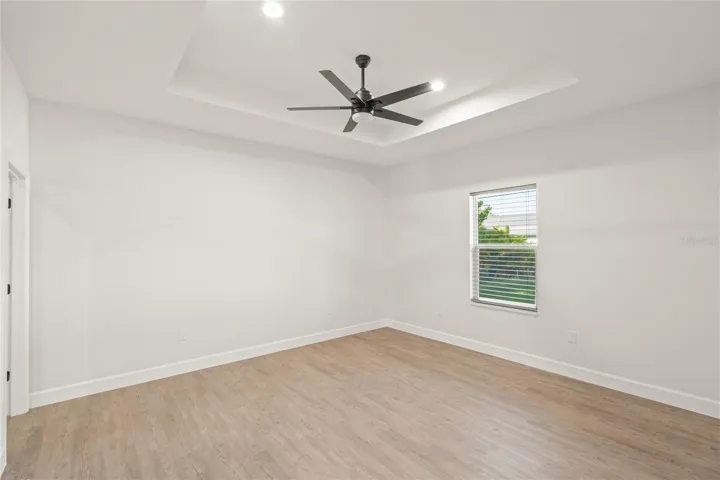 One or more photo(s) has been virtually staged. This BEAUTIFUL 2023 construction home has NEVER BEEN LIVED IN and is located in North Port. What a dream! The owner has spared no expense and provides a well-built home with a stem wall, concrete, block, and stucco construction, and has included IMPACT WINDOWS throughout. The tray ceilings, crown molding, wainscot, oversized baseboards, and feature wall in the great room all contribute to an elegant atmosphere. The modern kitchen cabinets, quartz countertops, stainless steel appliances, pendant lighting, ceiling fans, natural colors throughout, ceramic tile, and laminate flooring (NO CARPET) create a contemporary and stylish feel. The bathrooms have been tastefully completed with beautiful cabinets, fixtures, and upgraded tile, including floor-to-ceiling tile in the primary shower. The windows throughout have been finished with solid sills. The extended patio includes double doors and brick pavers for your enjoyment. A beautifully landscaped backyard makes for a peaceful retreat. The epoxy flooring in the garage enhances the functionality and appeal of this amazing home. And as an added bonus, there are NO HOA and NO CDD fees. Located close to where the Sarasota Memorial Hospital will be building its new facility. And you are not too far from the Cool Today Park, where the Atlanta Braves have spring training, or the famous Venice beaches. Make your appointment today to see this AMAZING home.
