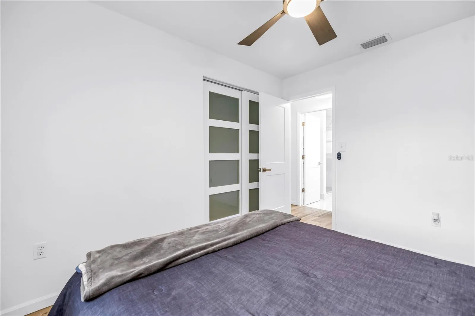 A private side entrance leads into a versatile drop zone area, perfect for daily essentials or coats and bags. The laundry is tucked away behind a sliding barn door, and this space also offers the option to convert into a second bathroom if desired.
