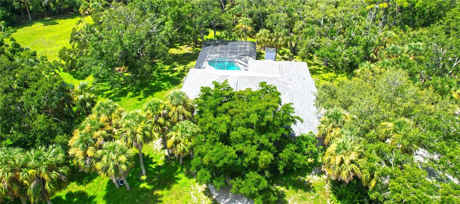 Discover a truly unique opportunity with this private 1.9-acre property offering freedom with no deed restrictions, Horses allowed, no HOA, and no flood insurance required. Just minutes from the new Sarasota Memorial Hospital in Nokomis, Nokomis Beach, and historic downtown Venice, this home combines privacy with convenience. The residence features three bedrooms and three full bathrooms, including a potential mother-in-law suite with its own entrance including an office or possible fourth bedroom, family room, bathroom, and an oversized storage room with custom floor-to-ceiling cabinetry. Recent updates include a new roof and gutters in 2024, a three-zone A/C system under warranty, and fresh exterior paint in 2021. Inside, bamboo floors enhance the living and dining areas, while outside, the grounds are fully fenced with a privacy gate. Enjoy a 36×16 pool that is nine feet deep with paver decking, under a 54×36 screen enclosure, plus a detached two-car garage and a 20×20 outbuilding potential guest house, studio or workshop. Surrounded by serene views in every direction, this irreplaceable property offers the perfect blend of peace, space, and proximity to shopping, dining, medical facilities, and pristine Gulf beaches.