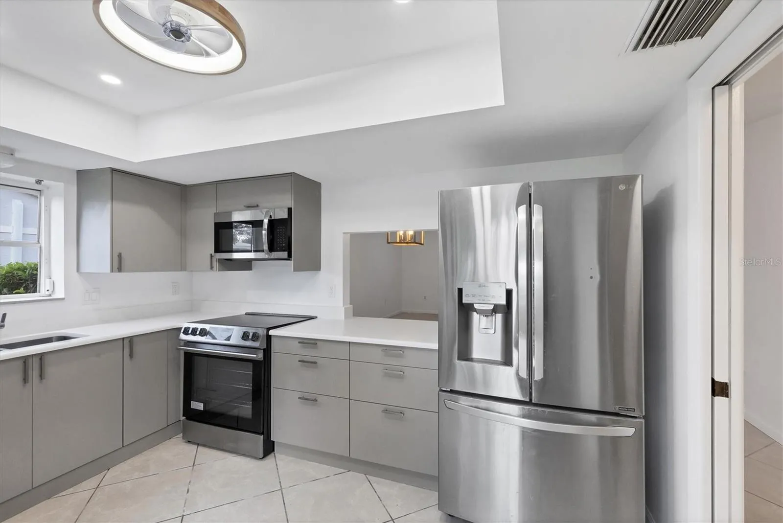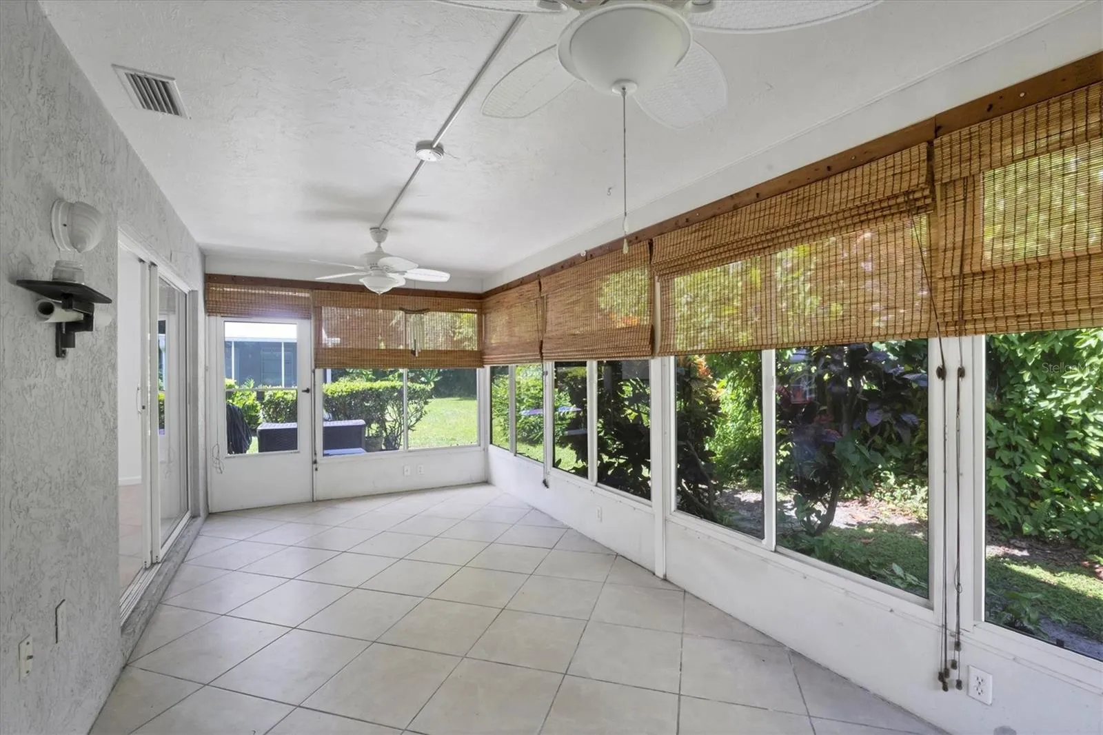 Effortless Florida living awaits in The Villas of Cedar Creek. Unbeatable location just off University Parkway. This spacious 2-bedroom, 2-bath villa with a 2-car garage offers maintenance-free comfort and a refreshed interior. NEW kitchen just completed NEW bedroom carpet and freshly painted interior, plus ceramic tile flooring in the main living areas. NEW ROOF (August 2023), NEW A/C (2024), NEW WATER HEATER (2024) provide peace of mind. The spacious, open great room features a vaulted ceiling and flows seamlessly into the enclosed Florida sunroom, offering additional living space. Overlooking lush, natural landscape provides serene views. The updated kitchen includes modern cabinetry, stainless steel appliances, a cozy dining nook with front yard views, and a convenient pass-through window to the dining room. The primary suite offers private access to the Florida sunroom, a walk-in closet with built-ins, and an ensuite bath with walk-in shower and granite counters. The second bedroom is conveniently located near a stylish guest bath. The two-car garage provides in-home laundry with LG washer and dryer, built-in storage and a utility sink. Located in a quiet, pet-friendly community with a screen-enclosed heated pool and spa, clubhouse, and included lawn care, irrigation, and exterior pest control. Just minutes to UTC, I-75, shopping, dining, hospitals, and world-class beaches. Perfect for year-round living, a seasonal retreat, or rental income.