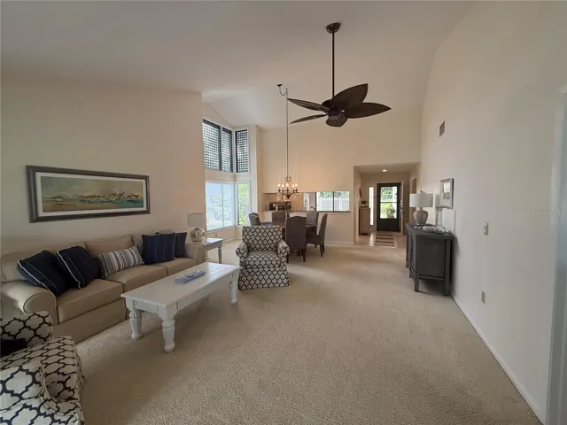 Available for short-term rental (3-month minimum). This beautiful end-unit villa in The Meadows offers the perfect home away from home; ideal if you’re building, remodeling, relocating, or simply looking for a Florida getaway. Bright and welcoming, the villa features cathedral ceilings, tall windows, and walls of sliders that fill the space with natural light while showcasing tranquil pond views and lush landscaping. The kitchen is designed for both style and convenience with off-white soft-close cabinetry, stunning Baltic granite countertops, and easy access to the grilling patio. The primary suite offers a peaceful retreat with pond views, crown molding, a walk-in closet, dual vanities, and a glass-enclosed shower. With no adjacent neighbors, enjoy true privacy and serenity. Step outside to a heated community pool just a block away, or explore all The Meadows has to offer: 14 miles of biking and hiking trails, tennis courts, pickleball, dining close by; all set on 1,650 acres of park-like grounds with 80 lakes. The location is unbeatable; just 15 minutes to downtown Sarasota, St. Armands Circle, Lido Beach, and close to UTC Mall, Nathan Benderson Park, Whole Foods, Trader Joe’s, the new Mote SEA Aquarium, and more. Utilities, cable, and Wi-Fi are included, plus a one-car garage for your convenience. Whether you’re here for work, transition, or relaxation, this villa is the perfect spot to enjoy the Sarasota lifestyle.