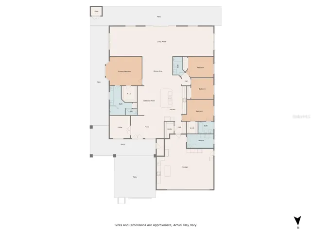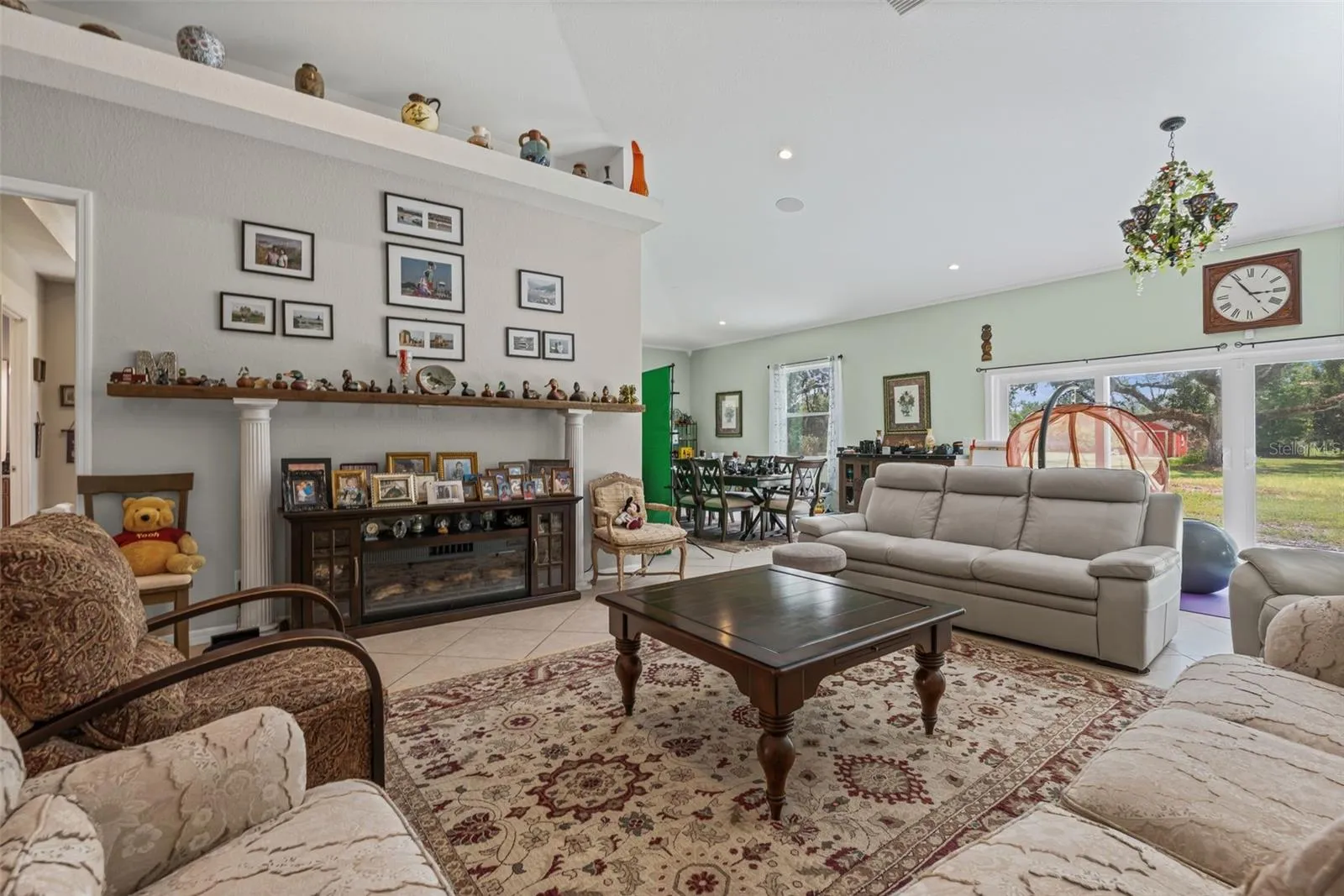 The home’s grand entry features elegant pavers and custom 8’ glass double doors, opening into an impressive open-concept living space with soaring 20’ ceilings. The home features impact-rated sliders and windows throughout, flooding the interior with natural light.