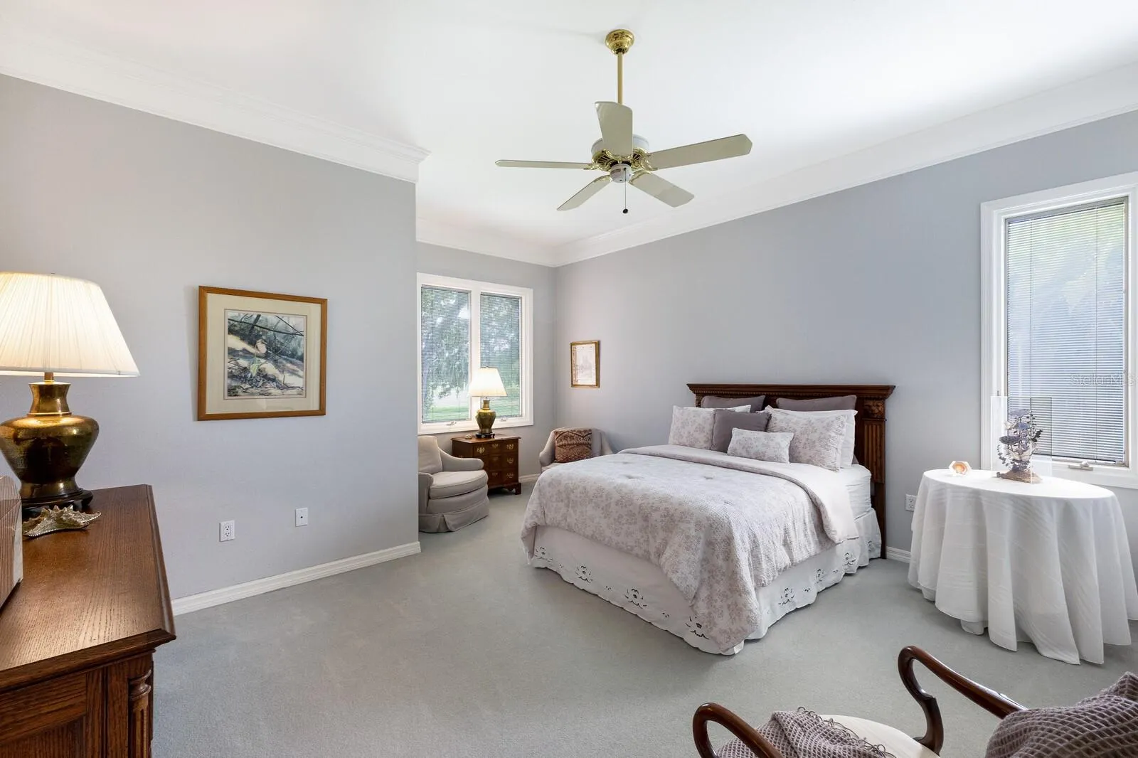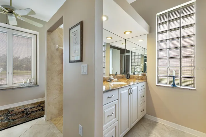 One or more photo(s) has been virtually staged. Incredible value in River Wilderness with upgrades and unbeatable features. This solid brick masonry custom home includes a brand-new roof (2025), freshly painted exterior, driveway and garage floor. Inside, you’ll find rich Spanish tile floors—warm, polished, and elegant—far more impressive in person than photos can show. This home delivers both space and function with a 2.5-car garage with golf cart entry, two hot water heaters, Pella windows with built-blinds and hurricane film, solid wood doors, and crown molding throughout. The chef’s kitchen offers a center prep island, breakfast bar, eat-in area, built-in desk, two pantries, and newer stainless steel appliances with filtered and instant hot water. The split floorplan ensures privacy: the primary suite features two walk-in closets, a soaking tub, and a seamless walk-in shower, while two guest bedrooms sit on the opposite side—one with a sitting area and golf course views. A flexible office/den adds workspace or guest space as needed. The great room is built for entertaining, with a wood-burning fireplace, wet bar, and custom built-ins. Step outside to the screened lanai with covered seating, second wet bar, and a heated pool overlooking the 11th tee box. River Wilderness offers oversized lots, mature landscaping, and 24-hour guard-gated access, plus amenities like a boat ramp and bocce courts. Memberships to The Club at River Wilderness are optional and include golf, pickleball, tennis, dining, and more. Prime location near Ft. Hamer Bridge for easy access to Bradenton, Lakewood Ranch, Sarasota, St. Pete, and local shops and dining.