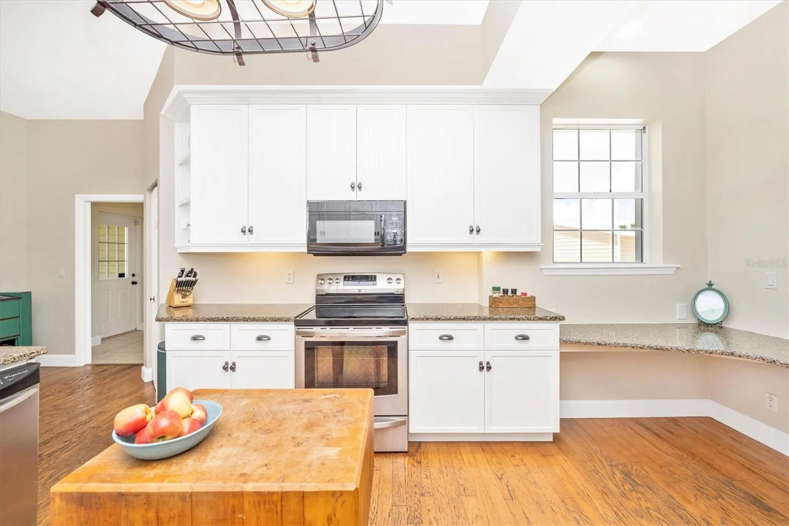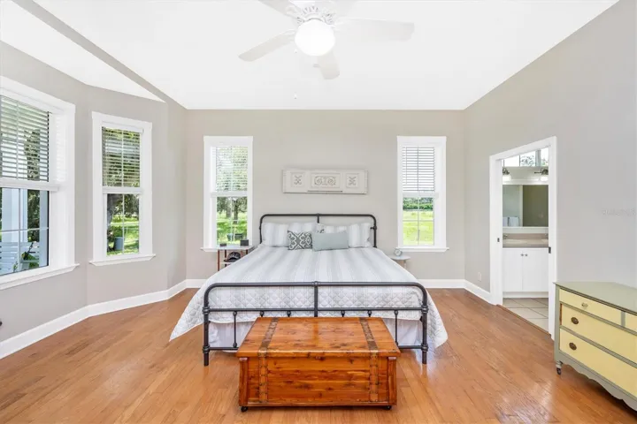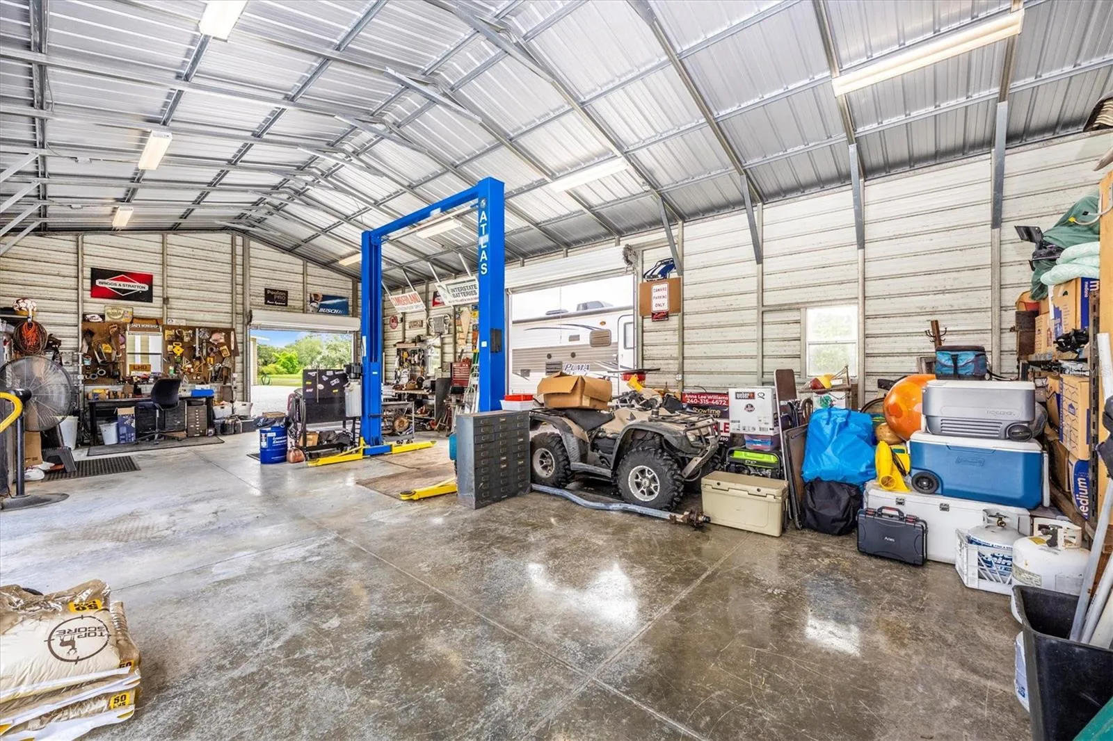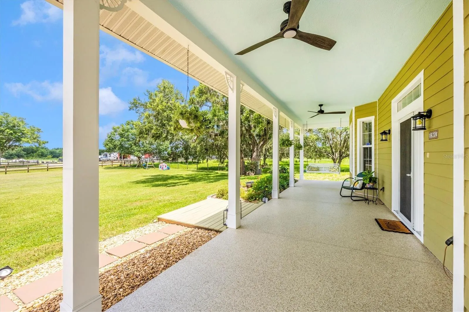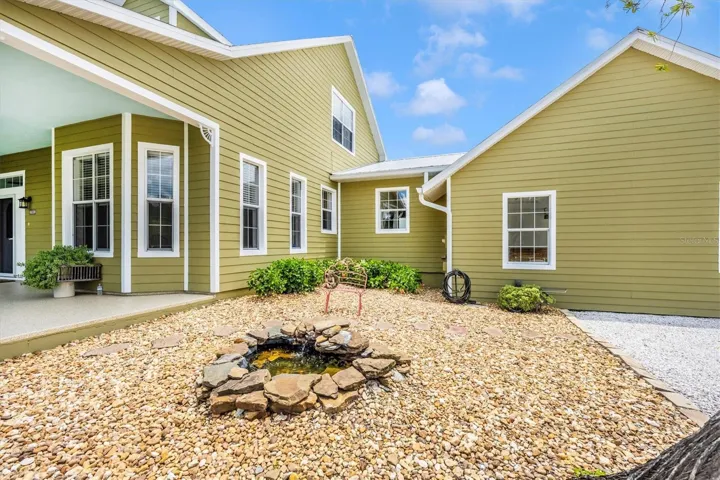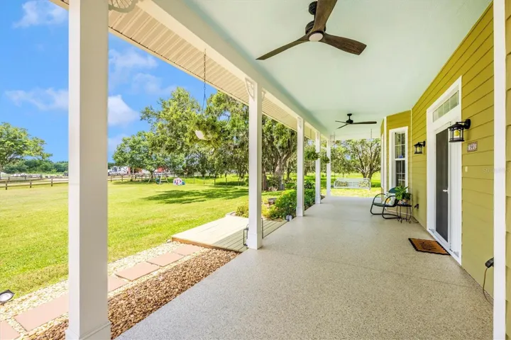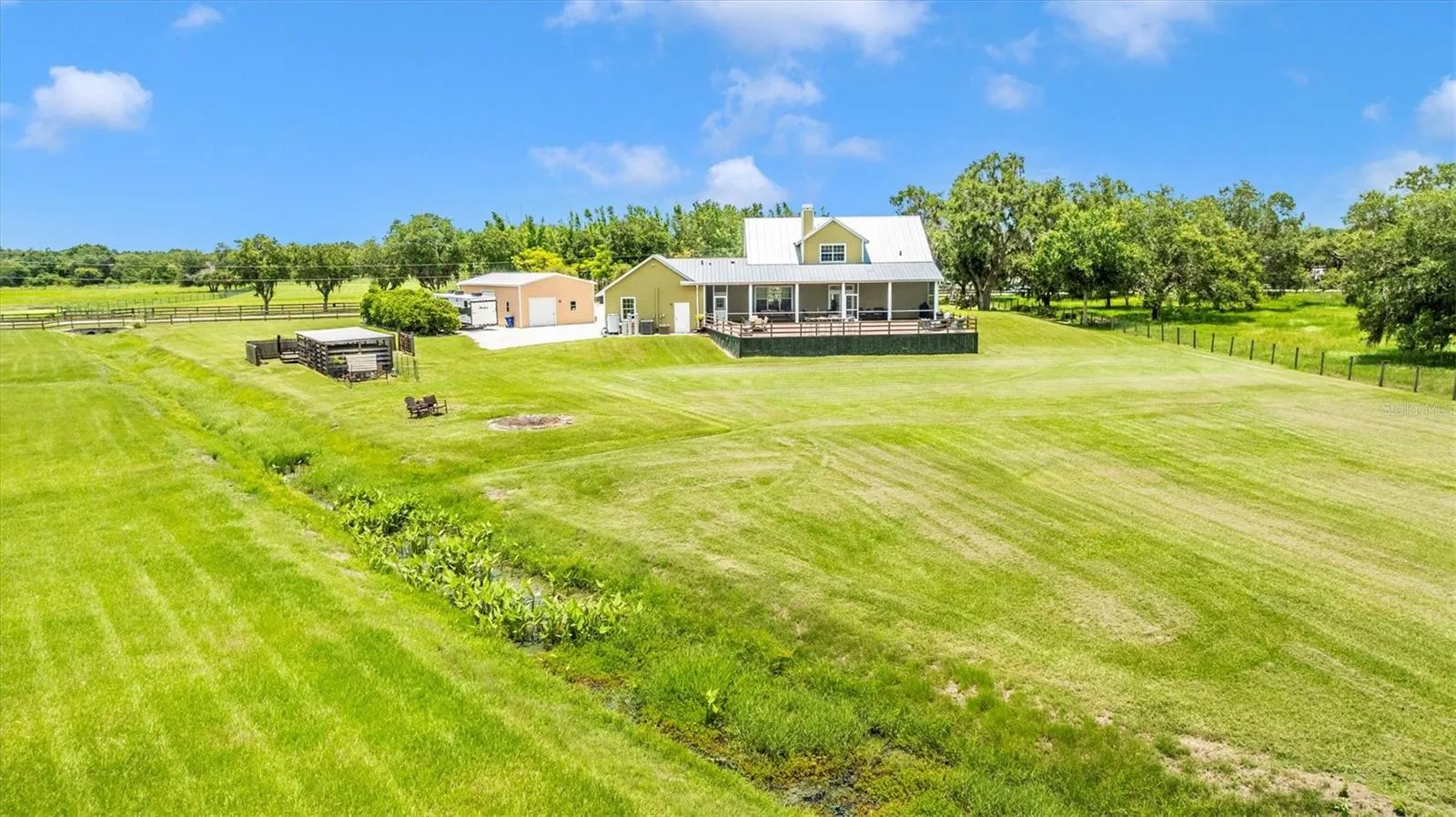The outdoor space is just as impressive. A large, east-facing deck is perfectly positioned for tranquil mornings and enjoying stunning sunrise views over the acreage, which is framed by majestic oak trees. It’s common to see deer and Sand Hill Cranes and Whistling ducks on the property. Did you make us coffee yet? Swing on the front porch and listen to the song birds. Beyond the attached 3-car garage, a separate oversized detached garage and workshop provides a haven for hobbyists or car enthusiasts. This space is equipped with three roll-up doors and a vehicle lift. For equestrian or animal lovers, there’s a three-sided shed with two pens and two open stalls Landscaped shell parking provides plenty of room for RV, boat and guests.