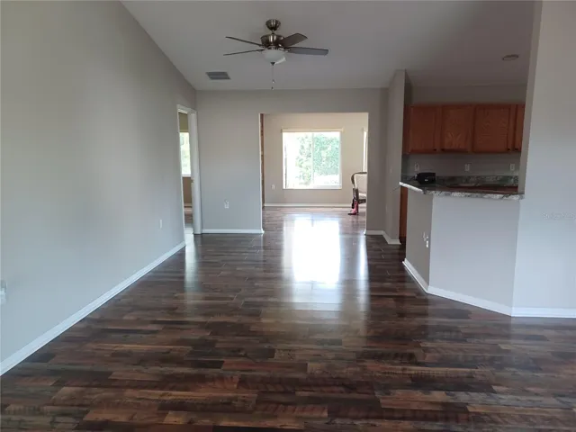Large 2 bedroom 2 bath home. Located in the very desirable 55+ community of Spruce Creek Preserve. This home sits on a spacious corner lot, with newer landscaping with rocks and grass. The Air Conditioning was replaced in 2020 and the roof was replaced in 2021. This homes exterior has recently been repainted and the kitchen has new appliances also, to include new washer and dryer in the laundry room. The bathrooms have vinyl tile floors with new light fixtures. The master bath also has new shower doors as well as new toilet. The main rooms have laminate flooring. This house stands alone with decorative drive and sidewalks to the front door and the rear screen room.