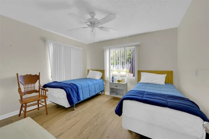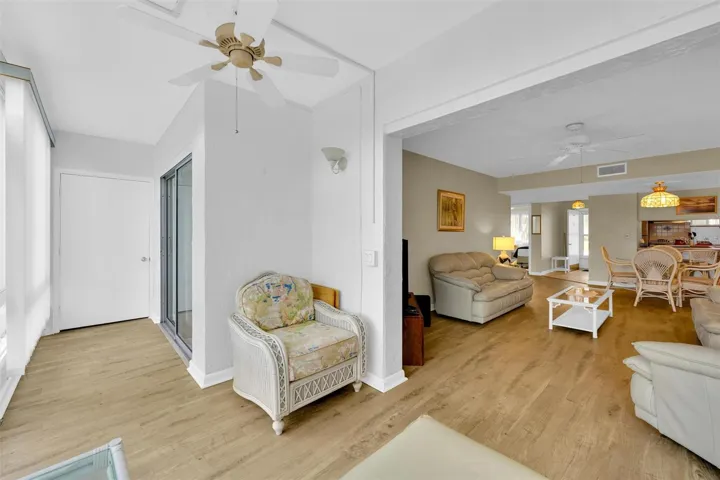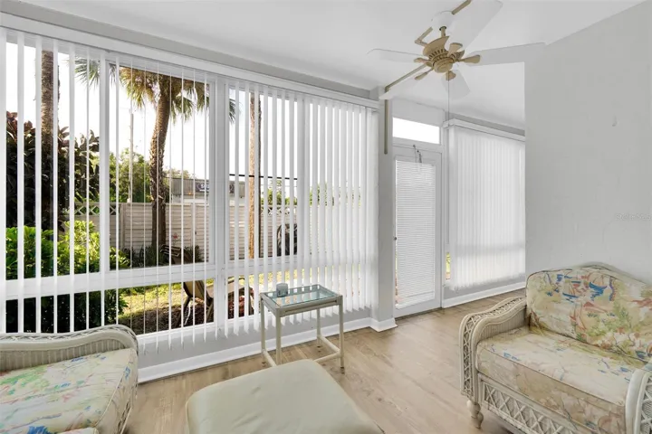 Discover the pinnacle of coastal living in this FURNISHED 2-bedroom, 2-bathroom ground-floor condo in the vibrant Edgewater Village community. This end-unit truly stands out with unique features: east-facing bedroom windows that flood the space with natural light, a rarity among other units; direct ground-floor access to two private outdoor patios, with the backyard patio providing a secluded retreat, perfect for grilling and entertaining, seamlessly paired with the extra square footage under air conditioning from the finished lanai, complete with large windows showcasing the backyard and inviting even more light. Edgewater Village offers resort-style amenities with low condo fees covering access to a sparkling heated pool, tennis, pickleball, bocce, shuffleboard, and a variety of community activities. Located just 1.5 miles from the Sunseeker Resort and across the Peace River from Punta Gorda’s charming historic downtown, you’re steps away from top restaurants, boutique shopping, medical facilities, and vibrant local events. Enjoy the beach just 35 minutes away, with Punta Gorda Airport only 15 minutes away for easy travel. Plus, catch Rays spring training baseball games just 15 minutes away or Braves spring training games 30 minutes away. Keep your eyes on the pool from your front patio, only steps away. You’ll also enjoy the mature trees, blending convenience with serenity. Don’t miss this turnkey, move-in-ready condo, with unmatched style, space, and location in Port Charlotte!