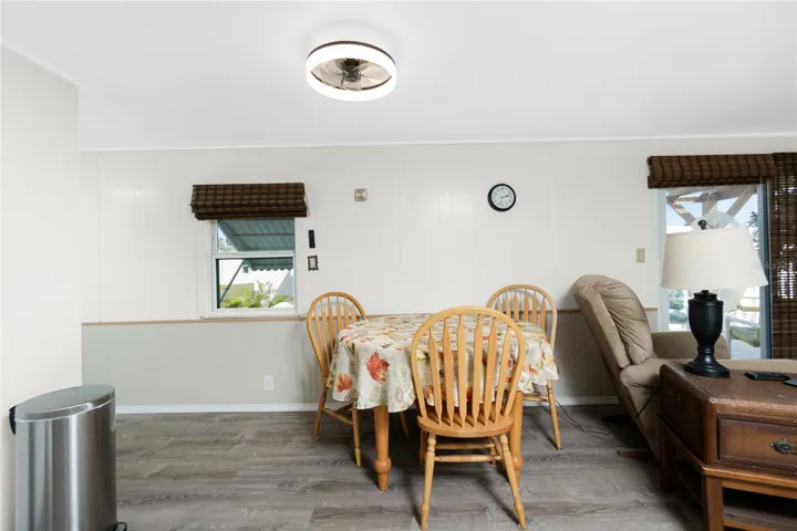 You will love this 2 bedroom 2 bathroom home just minutes from the Gulf Beaches and located in the sought after WATERFRONT COMMUNITY, Village of Holiday Lake. The ROOF is a 2022 and the AIR CONDIIONER 2021. Here you’ll find an UPDATED EAT IN KITCHEN with white cabinets and decorative backsplash. Nice size master bedroom with large double closet and full bath. An additional spacious bedroom is awaiting visiting friends and family along with a private bathroom with walk-in shower. Off the living area you can exit thru the sliders to your patio where you can enjoy your morning coffee or relax with evening cocktail. This home has many updates including NEW VAPOR BARRIER, SUBFLOORS and LAMINATE FLOORING.