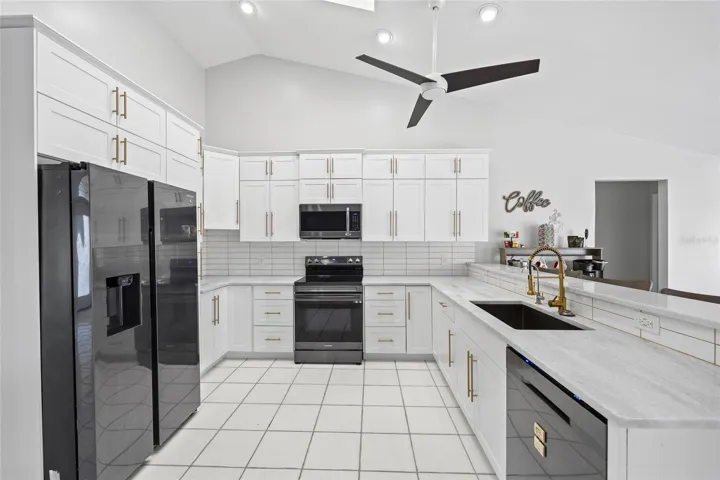 Short Sale. HIGHLY DESIRED SECTION 15 IN PORT CHARLOTTE! This UPDATED 4-bedroom, 2.5-bath, 2-car garage pool home offers a perfect blend of modern updates and classic charm, boasting 2,639 square feet of living space. Whole home solar system provides energy efficiency and monthly savings. Step inside and be captivated by the open floor plan, high ceilings, tile and hardwood flooring and living room with triple slider to lanai. The updated kitchen is a chef’s delight, featuring light cabinetry, quartz countertops, tile backsplash, and stainless appliances. With a separate island and two breakfast bars adorned with handcrafted wood accents, this kitchen is both functional and stylish. The kitchen seamlessly flows into the spacious living area, where a triple slider leads you to the lanai which opens to indoor and outdoor living.