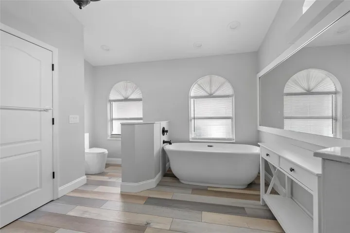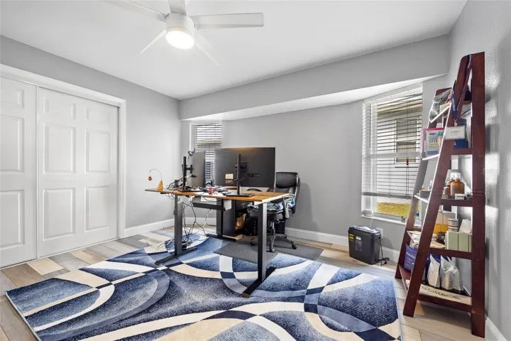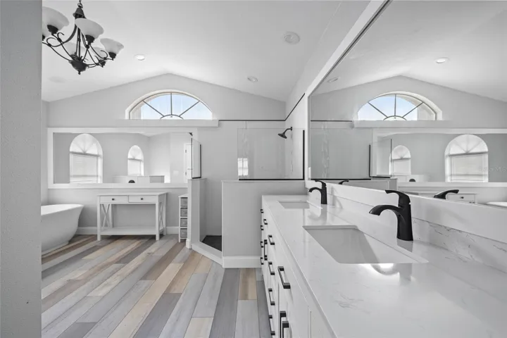 Retreat to the gorgeous primary suite, complete with a tray ceiling, rich hardwood flooring, and direct access to the lanai. The contemporary bath offers dual sinks, a soaking tub, and a walk-in shower, providing a spa-like experience. The additional bedrooms and bath have also been tastefully updated, ensuring comfort for all.