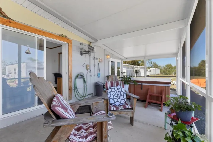 12 x 45 screened lanai with composite roof — PERFECT FOR RELAXING YEAR AROUND: Outdoor kitchen with gas range. –refrigerator, and bar seating.–Above-ground spa for soaking under the stars. Tropical landscaping featuring multicolored Hawaiian Plumeria trees.–