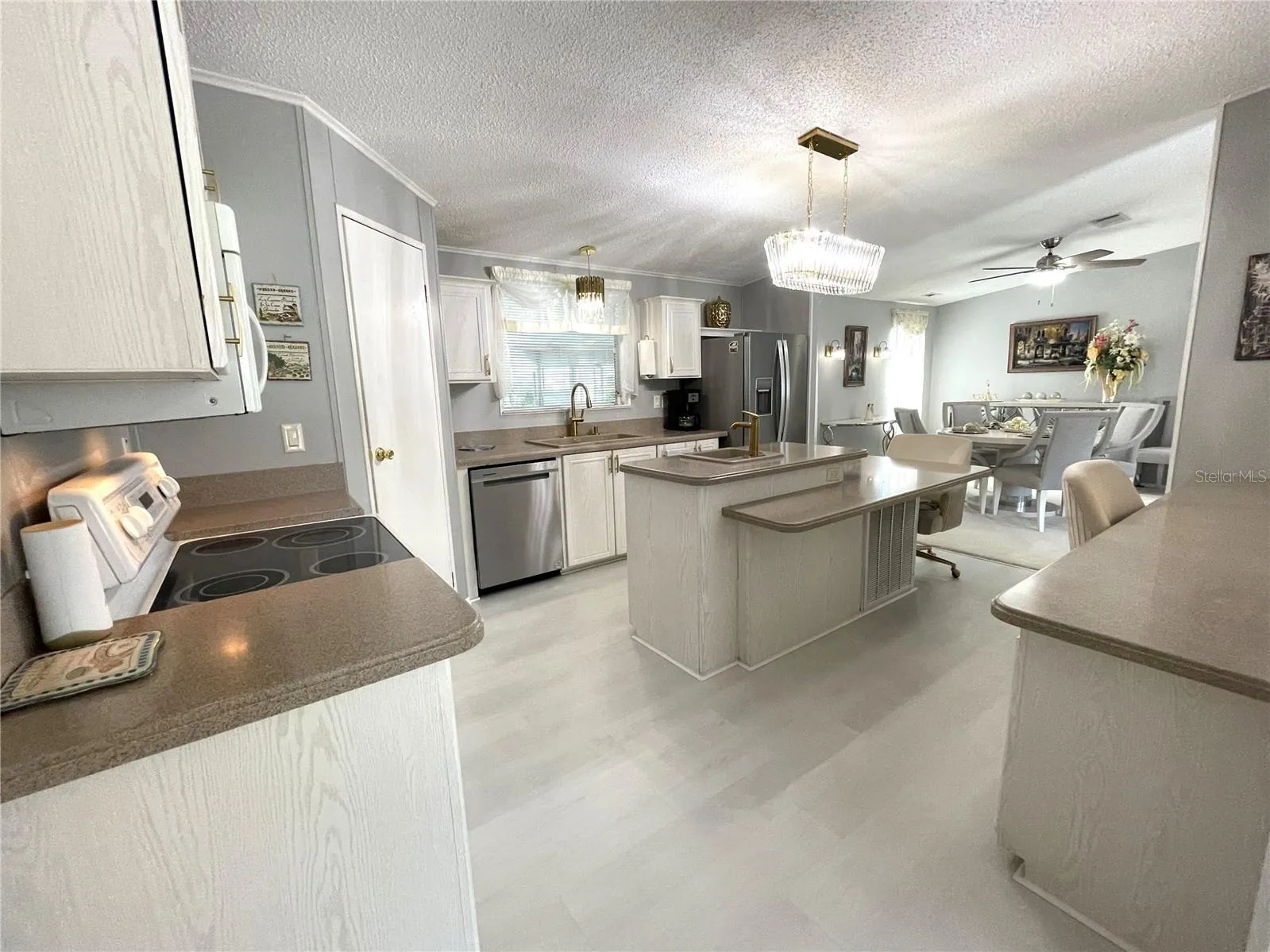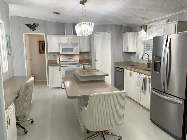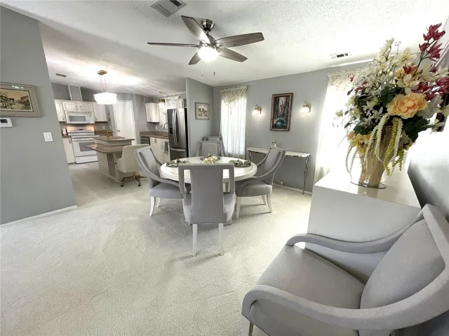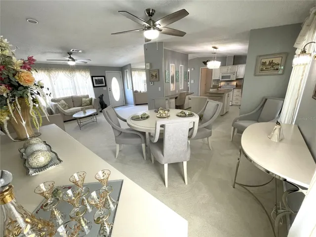 Reduced! Corner double lot! SPACIOUS 1680sf, 3/2 open, split floorplan, doublewide 1999 built manufactured home with many upgrades and updates that sits high and dry (no water damage) in lovely Mary Lu Mobile Home Park (shares are included in the purchase price), a 55+ community situated on the Peace River. The outdoor area has space for 4+ vehicles on the driveway and carport, outdoor sitting area in the shade of the carport along with an enclosed spacious Lanai. The lanai has plexiglass sliding windows on 2 sides and a ceiling fan. There is also a large storage shed with access from the lanai. The front of the home has green space and additional community parking. The Living room and Bonus area are at the front of the home. These areas blend together with matching style creating a large Living/sitting room. The Dining room is open to the Living room and Kitchen. These rooms have new carpet and have an abundance of natural light from the large north facing windows. The Kitchen has solid surface counters, white wash wood cabinets, updated brushed gold gooseneck faucets and beautiful crystal chandelier lighting fixtures. There is a walk-in pantry, large island with a prep sink, newly installed LVP flooring in the laundry room, bathrooms and kitchen, stainless steal appliances, and additional counter/desk space on the center wall of the home with decorative windows that is shared with the front rooms that allow natural light from the front windows. The Primary bedroom is roomy and has a walk-in closet. The double bowl vanity with a bank of drawers and new gooseneck faucets is in a separate room from the jetted spa where you can relax, walk-in shower and commode. There is also a linen closet for added storage. Across the home… the 2nd bedroom has new carpet and has a walk-in closet. The 3rd bedroom has a walk-in closet and is currently used as an art studio, the carpet wasn’t replaced. The guest bathroom has a tub/shower. The inside Laundry room leads out to the Lanai. The home also has a stereo system. New updates include new light/exhaust fans in the bathrooms, all of the ceiling fans/lights, many faucets, Hot water heater, dishwasher & refrigerator, LVP flooring and carpet 2024, sealed all duct work, new and enforced vapor barrier, UV light put in a/c system, 2025 New A/C system with 10 year warranty, and accordion shutters that are currently being installed. Roof, soffits, gutters, downspouts, and skirting 2023 (after Hurricane Ian). There is a community club house, shuffle board, private boat ramp, and open common area along the Peace River. This is a WELL MAINTAINED home is ready for you to come see and fall in love! Curtains do not convey.