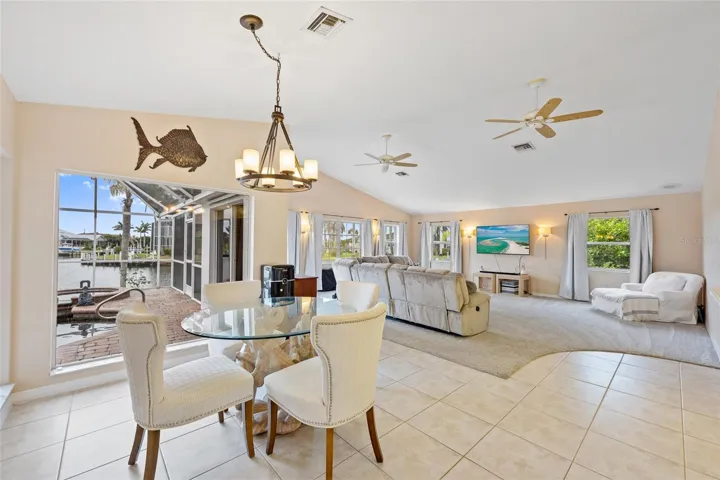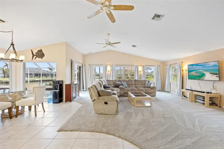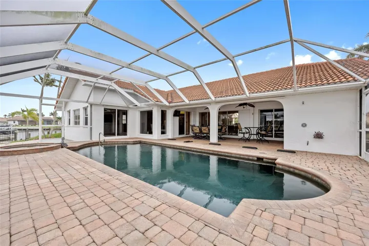 BURNT STORE ISLES! TIP LOT! SPACIOUS 3 BEDROOM PLUS OFFICE, 3 BATH, 2-CAR GARAGE WATERFRONT POOL HOME IN WITH SAILBOAT ACCESS TO CHARLOTTE HARBOR LEADING TO THE GULF! Nestled on a quiet cul-de-sac street with 185’ of water frontage, wide basin access and intersecting canal views. Step inside through double door entry to an open floor plan featuring over 2,900 sf. of living space, high ceilings, neutral décor, large windows and numerous sliders, creating a bright and airy ambiance throughout. The living room boasts a large pocketing slider to lanai with pool and water views plus formal dining area. The kitchen is equipped with an electric cooktop, stainless refrigerator, trash compactor, breakfast bar, and a casual dining area. The spacious family room offers access to the lanai, making it a perfect spot for entertaining. Retreat to the primary suite, which includes a slider to the lanai, his and her walk-in closets, and private bath with dual sinks, bidet, garden tub, and private shower. The split floor plan ensures privacy for all, with two guest bedrooms and a separate bath. Outdoor living is a highlight here, with a covered lanai and a panoramic screened heated pool and spa. Enjoy the convenience of an outdoor half bath and shower, along with a separate patio area ideal for grilling. From the lanai, a path extends down to the private dock with breathtaking water views—perfect for fishing or simply soaking in the beautiful surroundings. Located in a popular deed-restricted boating and golf course community, this home offers optional memberships at the nearby Twin Isles Country Club. Enjoy an 18-hole championship golf course, swimming pool, tennis complex, and a spacious clubhouse with dining and social events. With easy access to I-75 and a short drive to restaurants, shopping, The Yacht Club, Fishermen’s Village, and historic downtown Punta Gorda, this home is truly one of a kind. Don’t miss out on the opportunity to make this beautiful home your new Florida retreat. Schedule your private showing today!