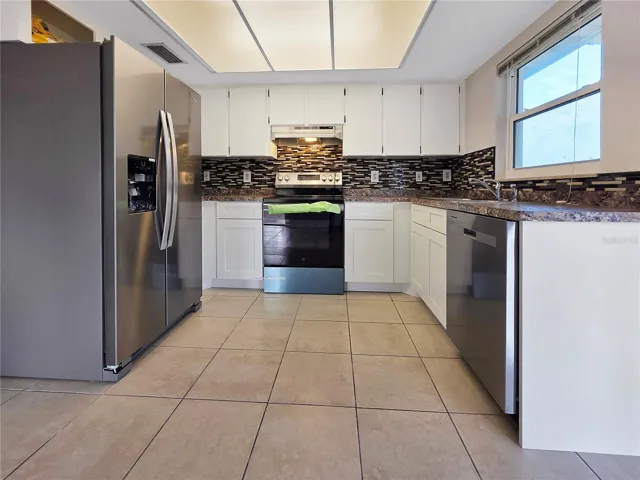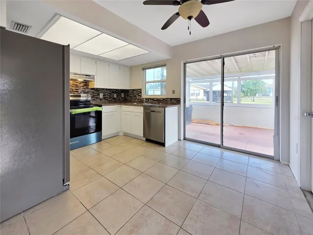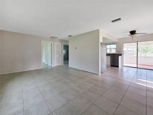 Recent improvements include a newer roof, new stainless steel kitchen appliances, fresh interior paint, and updated fixtures. The ceramic tile flooring throughout makes cleaning easy and keeps the home cool year-round. The open layout features a comfortable living area, dine-in kitchen, and versatile Florida room that can serve as a home office, workout space, or second lounge area.