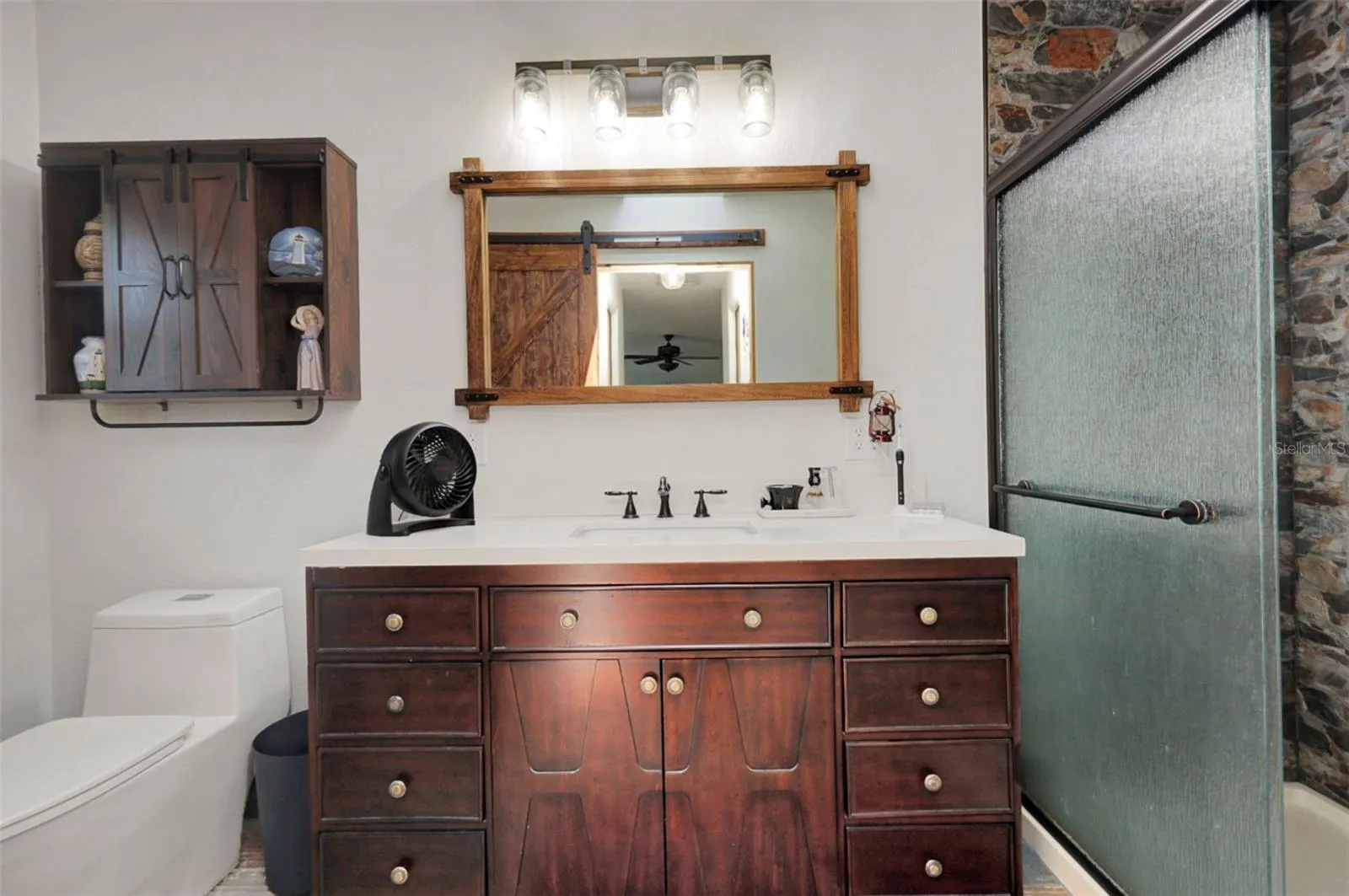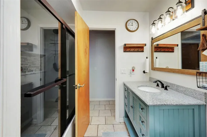 The garage has been thoughtfully converted to include a 15 x 7 ft laundry room, a 2 x 5 ft storage area, and a versatile 4th bedroom measuring 18 x 12 ft, ideal for a game room, hobby room, or home gym. The split-concept design offers privacy, with 3 bedrooms on one side and the luxurious primary suite on the other. The primary suite features his and her walk-in closets, and a master bath with a walk-in shower and a relaxing bathtub.