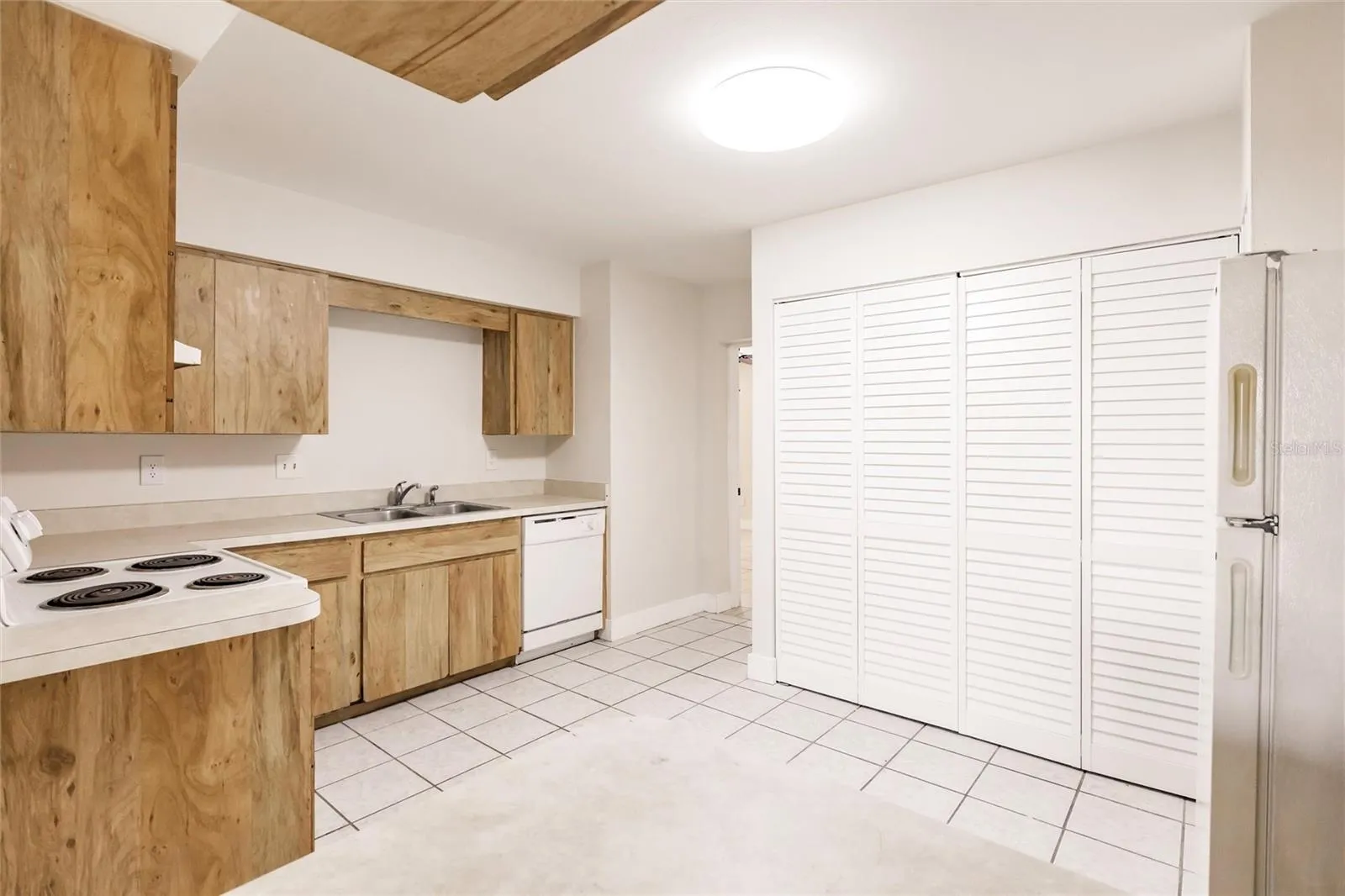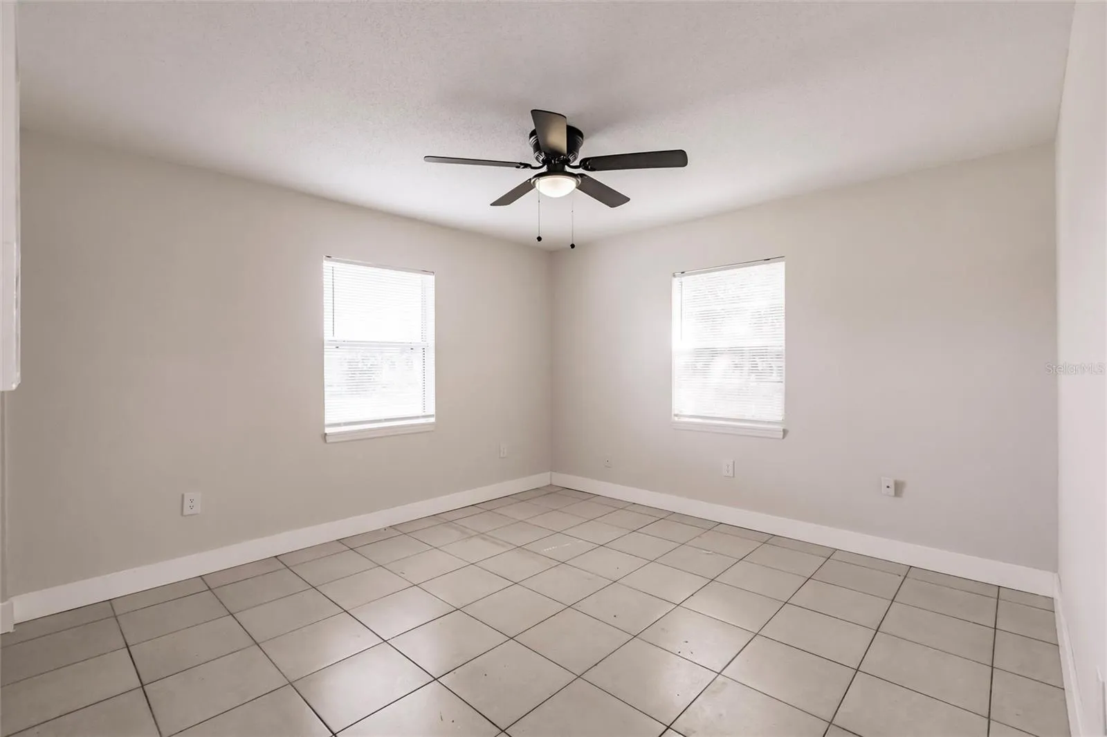 One side features a spacious 3-bedroom, 2-bath layout, while the other offers a comfortable 2-bedroom, 2-bath floor plan—ideal for generating rental income or multi-generational living. Both units include indoor laundry for added convenience, durable tile flooring throughout, and private back porches perfect for relaxing or entertaining.