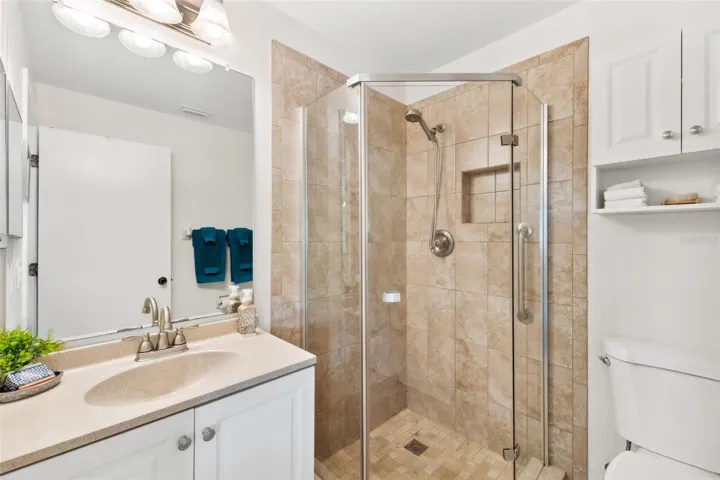 The kitchen has been thoughtfully designed with bar seating for three, offering a seamless connection to the living area — ideal for entertaining or casual meals with friends and family. The kitchen has been tastefully remodeled with new cabinets, Backsplash and Granite countertops. Luxury Vinyl plank throughout the main living areas and bedrooms give it that warm living feel. The spacious Primary bedroom features a walk-in closet and an en suite bathroom for added privacy and convenience. You’ll also love the in-unit washer and dryer for effortless everyday living. The guest bathroom has been completely remodeled with beautiful Porcelain tile and stone accents and a new vanity.