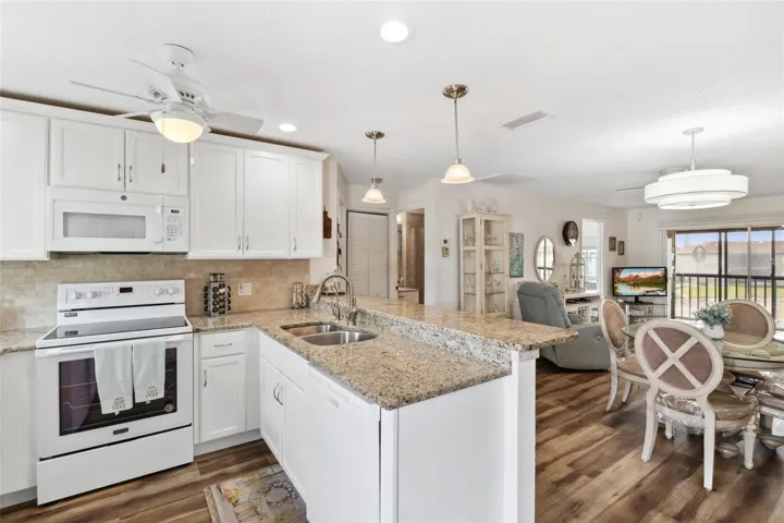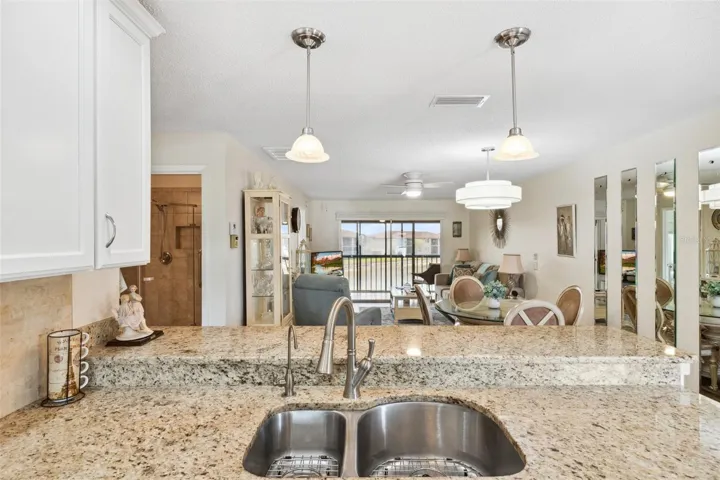 Step inside to a cozy, light-filled living room, where natural light pours in through double sliding glass doors, inviting you out to your private lanai. It’s the perfect spot to savor your morning coffee, dive into a good book, or unwind while taking in breathtaking sunrises and sunsets over the lake.