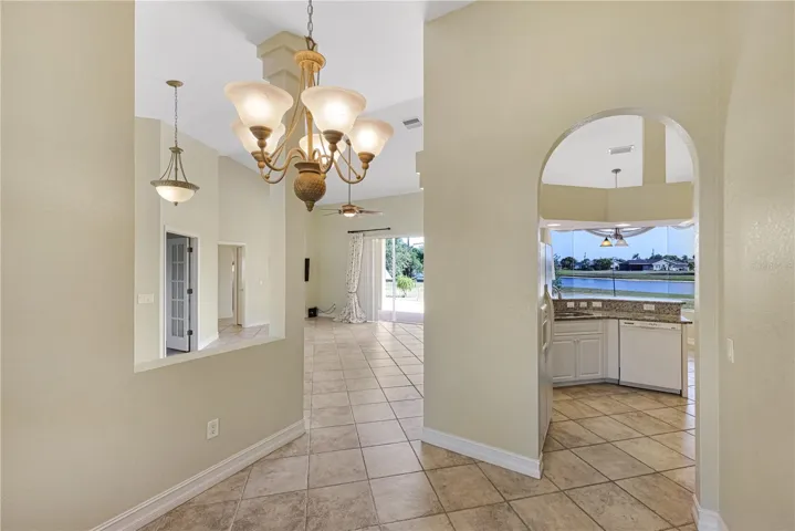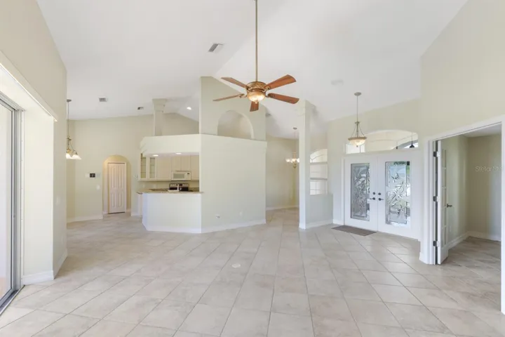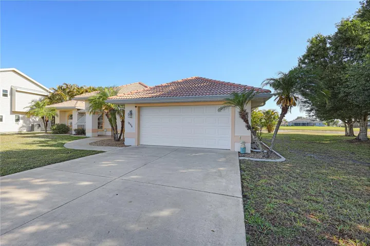 FANTASTIC PRICE REDUCTION! Welcome to this beautiful Deep Creek LAKE VIEW 3-bedroom (with optional 4th bedroom/office) home nestled on the shore of Lake Zappa in the desirable Deep Creek community. From the moment you step through the double etched-glass front doors, you’re greeted by breathtaking lake views and the peaceful presence of local wildlife. A large aquarium window provides the perfect backdrop for morning coffee or relaxing with a book, while the gourmet kitchen — complete with granite countertops, glass-front cabinetry, and panoramic lake views — is a dream for both cooking and entertaining. Enjoy Florida’s indoor-outdoor lifestyle with 8-foot sliding doors that open to the pool deck area, creating a seamless flow for gatherings or quiet evenings by the water. The spacious primary suite features a luxurious en-suite bathroom with dual sinks, a jetted soaking tub, walk-in shower, and walk-in closet. Throughout the home, you’ll find thoughtful touches like 14-foot ceilings, porcelain tile flooring, a built-in stereo system, hurricane shutters, and a tile roof. The dedicated office with French doors and a closet easily doubles as a fourth bedroom. Additional highlights include: Split bedroom floor plan for added privacy. Buyer must be willing to add pool cage per deed restrictions of the community. Conveniently located near shopping, dining, golf courses, I-75, and historic downtown Punta Gorda and all the activities.