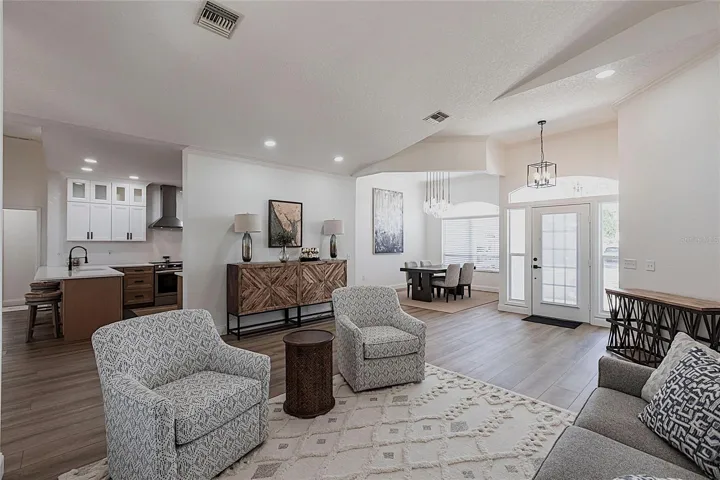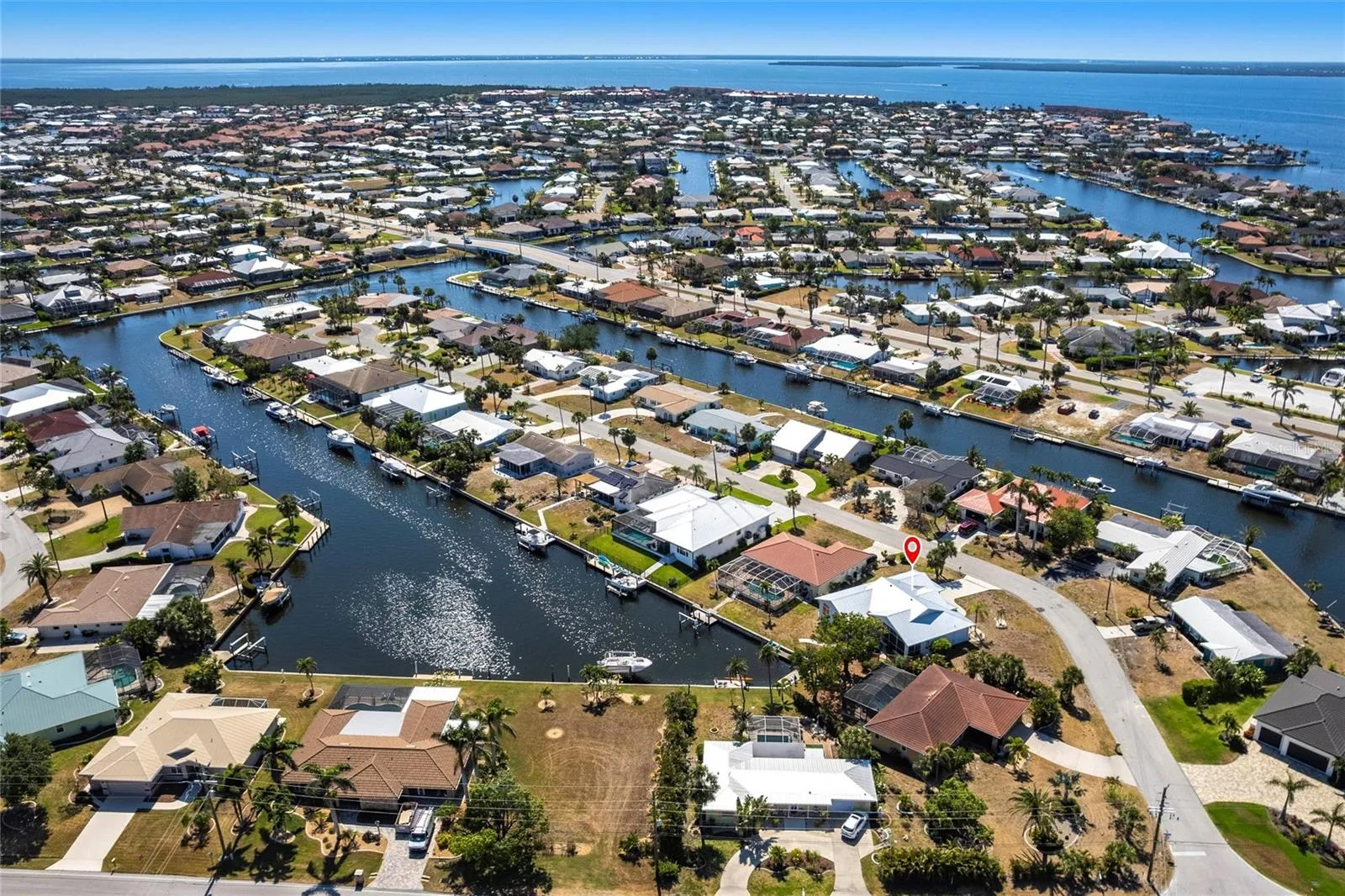 Welcome to Your Slice of Florida Paradise in Punta Gorda Isles! Nestled in the highly sought-after Punta Gorda Isles, this beautifully updated waterfront home is truly a boater’s dream, offering direct open water access in just minutes. Boasting 2,174 square feet of living space, the thoughtfully designed open and split floor plan creates the perfect setting for both everyday comfort and entertaining. The home features multiple living areas including a formal living room, a dining area, a spacious family room, and a cozy dinette—all seamlessly connected to the inviting outdoor space that defines Florida living. From the moment you enter, you’ll be greeted by an atmosphere of calm and elegance. Natural light pours in through expansive arched windows, while vaulted ceilings and four sets of French doors enhance the sense of space and connection between the interior and the outdoors. At the heart of the home, the updated kitchen combines style and functionality with top-of-the-line Samsung stainless steel appliances, a beautiful mix of white and wood cabinetry accented by sleek black hardware, and stunning quartz countertops paired with a matching subway tile backsplash. The open layout allows for a natural flow between the kitchen and surrounding living spaces, ensuring everyone can stay connected whether they’re cooking, relaxing, or dining. The luxurious primary suite offers its own private French doors to the lanai, along with a spa-like en-suite bathroom featuring dual vanities, a soaking tub, a large Roman shower, and a walk-in closet. Two additional guest bedrooms are generously sized and filled with natural light—one with lovely water views—and share a convenient Jack-and-Jill style bathroom. Step outside to enjoy the screened-in lanai, a peaceful backyard is pool-ready with space for a proposed pool design (ATTACHED) and a cement dock with a long view down the canal. The dock accommodates vessels up to 26 feet, and seller-provided schematics are available for adding a boat lift, enhancing the property’s appeal to boating enthusiasts. This home also includes numerous updates and upgrades such as new luxury vinyl flooring throughout, a new metal roof installed in 2022, hurricane shutters, new fans and light fixtures, and a laundry room complete with washer, dryer, and utility sink. Additional features include a two-car garage, a 2019 water heater, and an A/C system from 2006. Perfectly located within close distance of Fishermen’s Village, the PGI Yacht Club, Visual Arts Center, Gilchrist Park, the dog park, and the scenic waterfront promenade, you’ll enjoy convenient access to dining, shopping, recreation, and all the vibrant amenities of downtown Punta Gorda. Don’t miss the chance to make this exceptional waterfront home your own. Schedule your private showing today and experience the unmatched lifestyle of Punta Gorda Isles. **PLEASE ENJOY THE 3D INTERACTIVE VIRTUAL TOUR ASSOCIATED WITH THIS LISTING**
