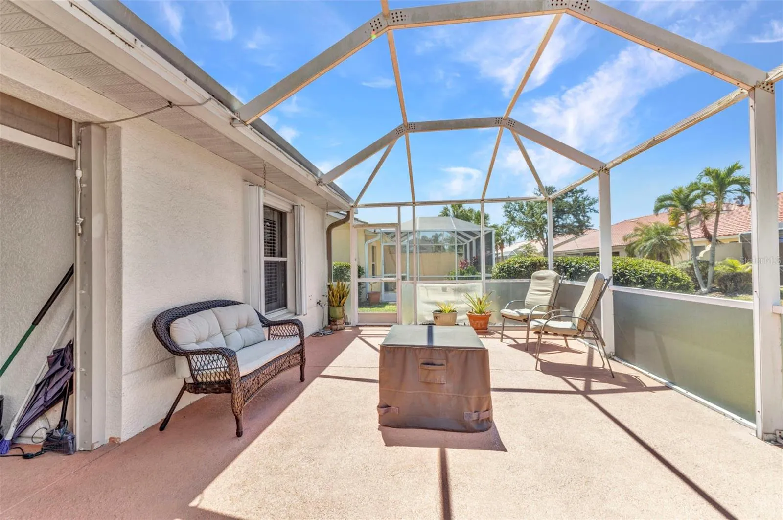 The versatile third bedroom is currently used as a home office, providing flexibility for work or guests. Unwind on the screened-in lanai off the main living room, which offers a peaceful, private setting to enjoy Florida’s beautiful weather.