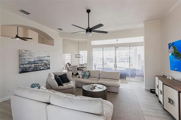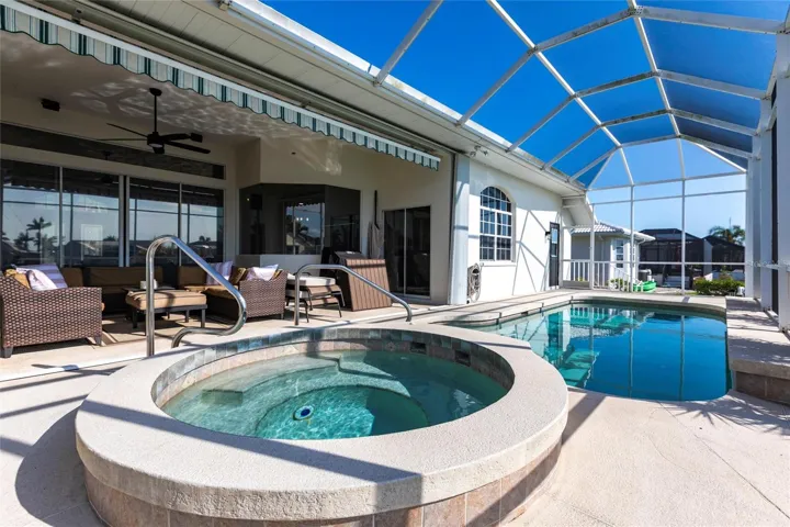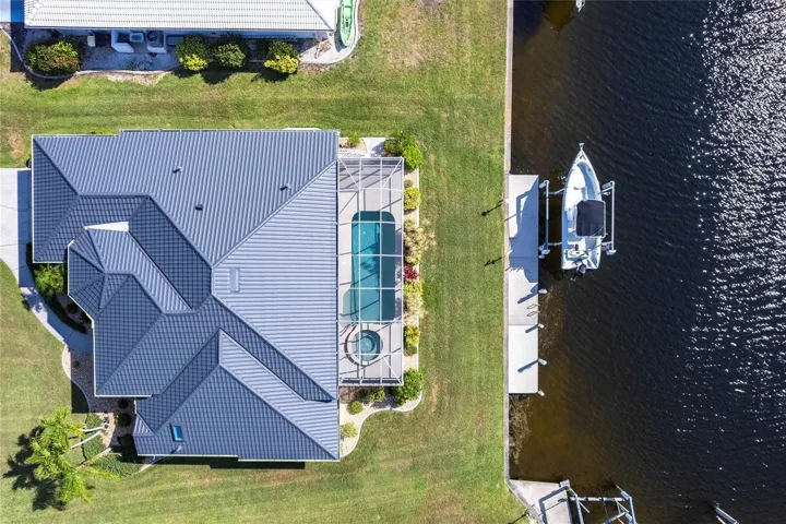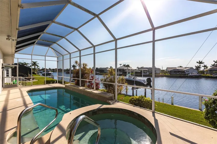 FULLY FURNISHED/TURNKEY! Located in the highly sought-after Brunt Store Isles community in Punta Gorda. This waterfront property is a boater’s and golfer’s dream! Open water access in a matter of minutes along with the Twin Isles Country Club for the golfer. This beautifully maintained 3-bedroom, 2-bath, 2 car garage, waterfront, pool home offers 86′ of seawall, expansive canal basin views, and sailboat access to Charlotte Harbor. Brand new Aluminum Roof added in 2024. With western rear exposure, enjoy stunning sunset views right from your backyard. Inside, the home features a spacious great room, a separate formal dining area, and a large chef’s kitchen with a cozy breakfast nook framed by a mitered glass bay window overlooking the pool and canal. The great room flows seamlessly to the lanai, blending indoor and outdoor living — perfect for entertaining or simply enjoying the Florida lifestyle. Architectural highlights include cathedral ceilings, crown molding, plant shelves, transom windows, and a skylight, all contributing to a light and airy feel throughout. The kitchen is equipped with granite countertops, wood cabinetry, stainless steel appliances, a movable island, and a lighted glass-shelved bar area. The spacious primary suite features direct access to the lanai, tranquil water views, two closets (including a large walk-in), and an updated master bath with dual granite vanities, a glass-enclosed tile shower, and a corner soaking tub. A split floor plan ensures privacy, with two generous guest bedrooms — both with walk-in closets, and one with French doors and private lanai access. The guest bathroom with new granite countertop vanity, also serves as a convenient pool bath. Step outside to your screened lanai with an in-ground heated pool, spa, and a covered entertaining area complete with a retractable awning for customizable shade. Just steps away, your extended concrete dock with 12,500 lb. boat lift offers water and 50-amp electric service, plus an outdoor shower for easy cleanup after boating. Additional features include all new Pergo flooring, Restoration Hardware and Hooker brand Furnishing, new interior and exterior paint, new pool heater/control system/pump, laundry room with utility sink, Reverse Osmosis, irrigation, security system. Located on a wide canal, this property offers exceptional maneuverability for your boat — and the opportunity to keep it docked right in your backyard. Close to I-75/US41 and nearby to Fishermen’s Village, downtown Punta Gorda shops & restaurants, great boating, fishing, sailing, and more. Home is completely spotless and waiting for you. Come enjoy the Florida lifestyle in this impressive home
