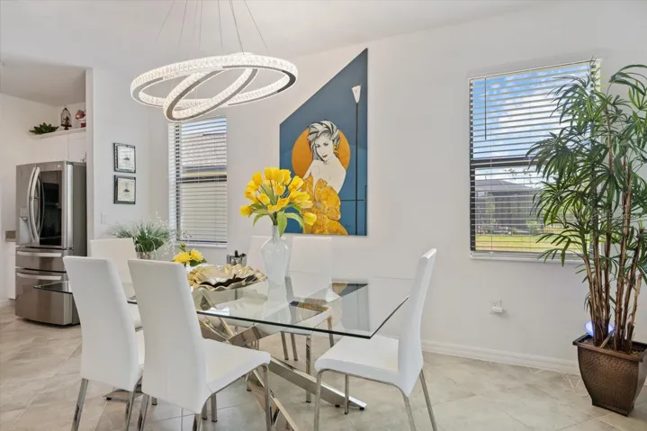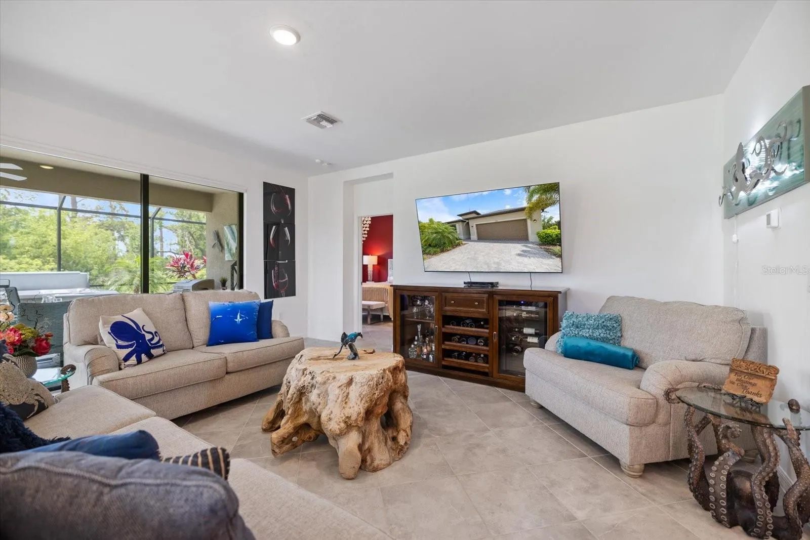 NEW PRICE!! NO FLOOD INSURANCE REQUIRED! Welcome to your executive home in the Isles of West Port. This beautifully upgraded Marsala floor plan features 3 bedrooms, 3 full baths, plus a den/office that can serve as a 4th bedroom. The open-concept layout includes a spacious kitchen with granite countertops, tall cabinets, walk-in pantry, reverse osmosis system, upgraded refrigerator, and large island with seating. The living and dining areas open to a screened lanai with a 6-person spa, dog run, and lush privacy landscaping. The primary suite offers his-and-hers walk in closets and a spa-style bath with soaking tub and walk-in shower. Additional highlights include custom electric curtains, designer lighting, and an HOA that maintains your lawn. West Port offers resort-style amenities—pool, playground, trails, and more—all minutes from beaches, golf, and spring training stadiums.