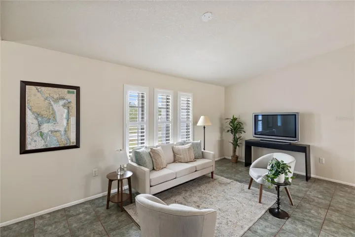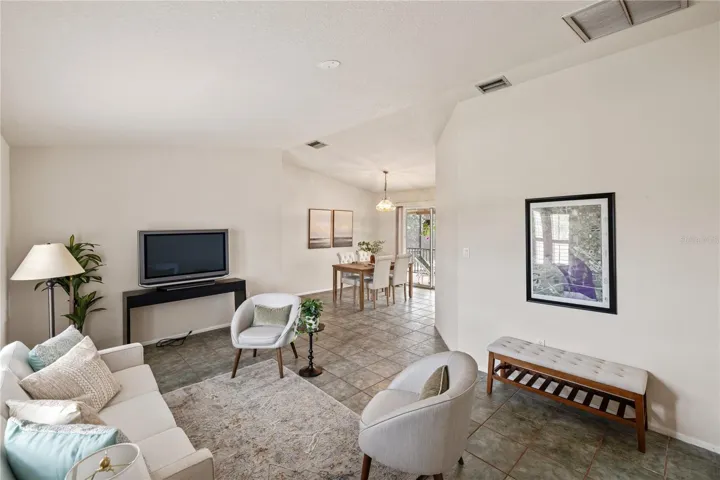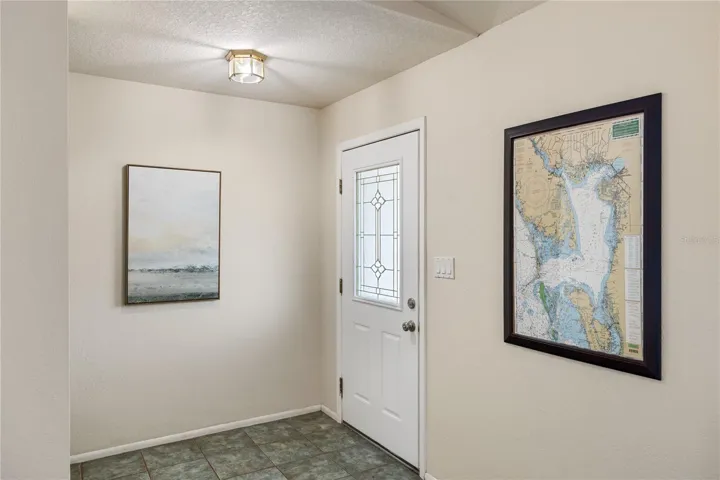 Inside, vaulted ceilings and tile flooring create a spacious, airy feel, complemented by a newer roof (2017), newer a/c (2019) recent re-plumbing, newer water heater, and a new pool cage/screen. The home is wind resistant, with convenient storm coverings for the windows and an impact garage door.