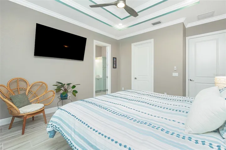 The home includes a convenient pool bath, ideal for seamless indoor-outdoor living. Step outside to your tropical backyard retreat with a heated saltwater pool and spa, irrigation system fed from the canal, and lush landscaping.