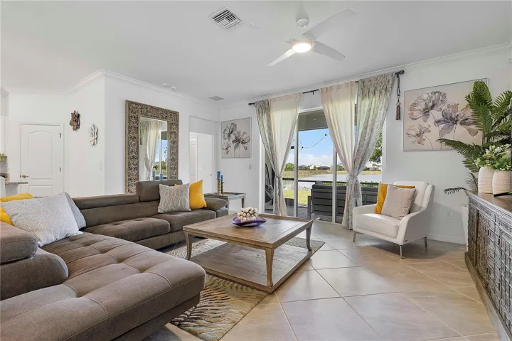 SPOTLESS & FRESH stunning 4-bedroom, 3-bathroom home is move-in ready and beautifully appointed throughout. Featuring a spacious en suite primary retreat, the home boasts high-end upgrades, a smart open layout, and has been hardly lived in. Located in the highly sought-after Trails Edge neighborhood in Babcock Ranch, you’ll love being in the heart of all the action—with no construction noise or disruptions. All roads are completed and the community is fully developed, offering peace, quiet, and a beautifully finished setting. This beautifully appointed four-bedroom, three-bathroom home offers stunning lake views and a spacious layout perfect for comfortable living and entertaining. The interior features elegant crown molding, large diagonal tile flooring, and designer light fixtures, ceiling fans, and mirrors throughout, adding a touch of luxury to every room. The stylish glass front door sets the tone for the upscale finishes found inside, including a beautiful kitchen with a gas stove, granite countertops, large Island and stainless steel appliances. Enjoy the expansive backyard, ideal for outdoor living, with plenty of room for customization or future enhancements. Step outside to enjoy professional landscaping with elegant queen palms, creating an inviting and serene outdoor setting. Schedule your showing today! Enjoy living in Babcock Ranch, America’s first entirely solar-powered town, with access to multiple community pools, nature trails, with shopping and dining. Come enjoy the convenience of Babcock Ranch living with festivals, farmer’s markets, Concerts, Health gym & just a golf cart ride to the grocery store. There is so much to do with hundreds of clubs and activities planned every month. There is a K-12 neighborhood school with a brand new sports complex, including football, soccer and baseball fields. There are many playgrounds and parks, including multiple dog parks and a brand new skate park and six new parks along the nature trails. Babcock Ranch is a top master planned community and was featured on CNN and 60 Min for not losing any power or internet after hurricane Ian made a direct hit and Milton came very close. Beautiful parks and amenities let you experience SW Florida at its finest! Schedule your private tour today and make your dream home a reality! Come live a better life at Babcock Ranch!